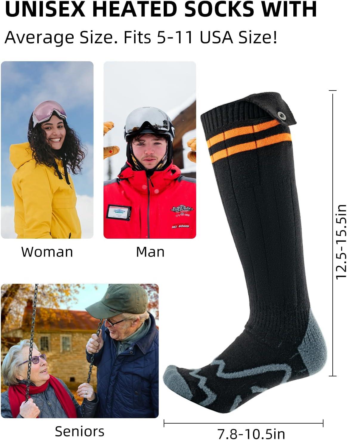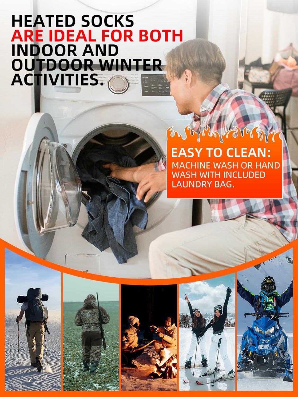 Soft, Breathable, and Machine Washable: Our heated ski socks are made of soft, breathable materials. They're absorbent, quick-drying, and elastic, providing maximum comfort. These unisex socks fit US sizes 5-11, making them perfect for both men and women. Plus, they're machine washable and come with a laundry bag