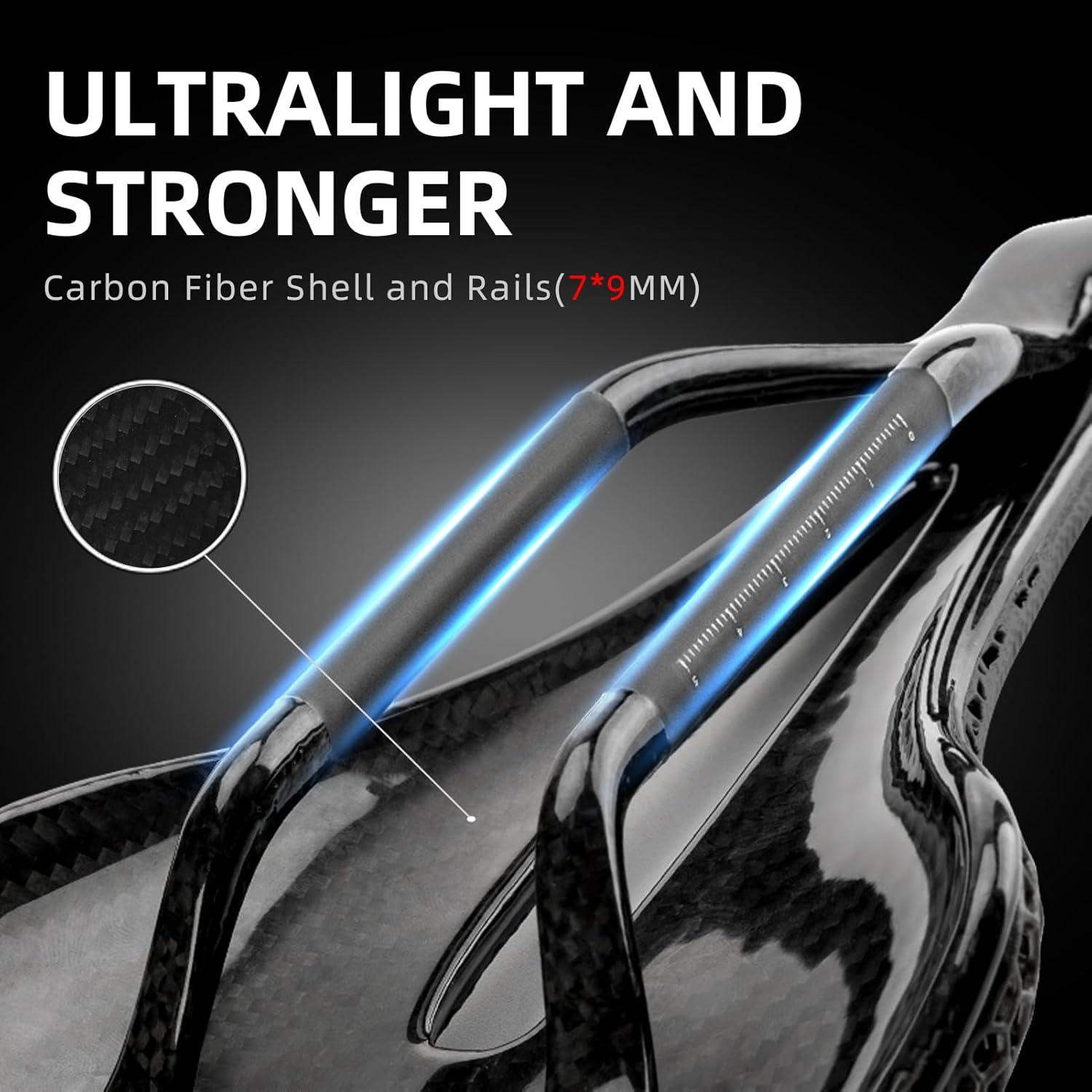 Lightweight Carbon Fiber Construction: Engineered with high-performance carbon fiber, this saddle minimizes weight without compromising durability. Compatible with a 7x9mm adapter (not included), it’s perfect for cyclists looking to maximize performance