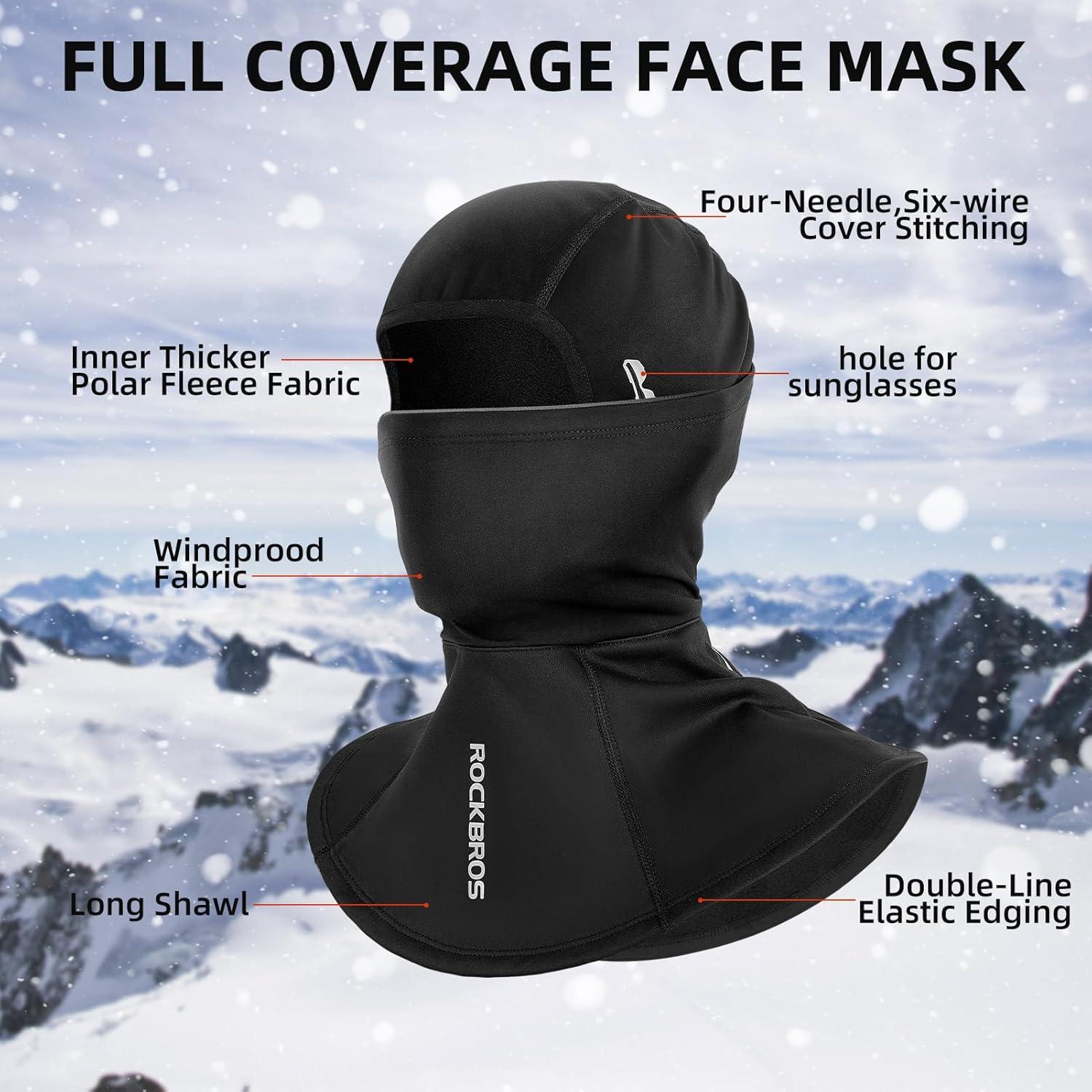 ROCKBROS Balaclava Ski Mask for Men Cold Weather Scarf Windproof Thermal Winter Neck Warmer Hood for Cycling Hiking(Black 2)