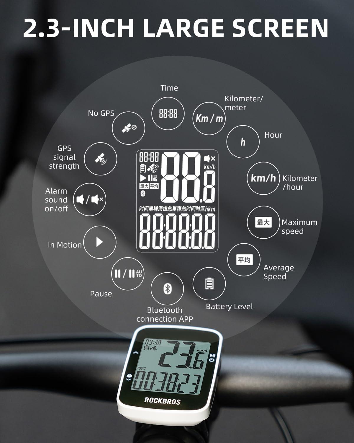 ROCKBROS Bike Computer Bike Speedometer GPS Wireless Cycling Computer with Bluetooth, IPX7 Waterproof,600mAH Battery and 2.3" Large Display