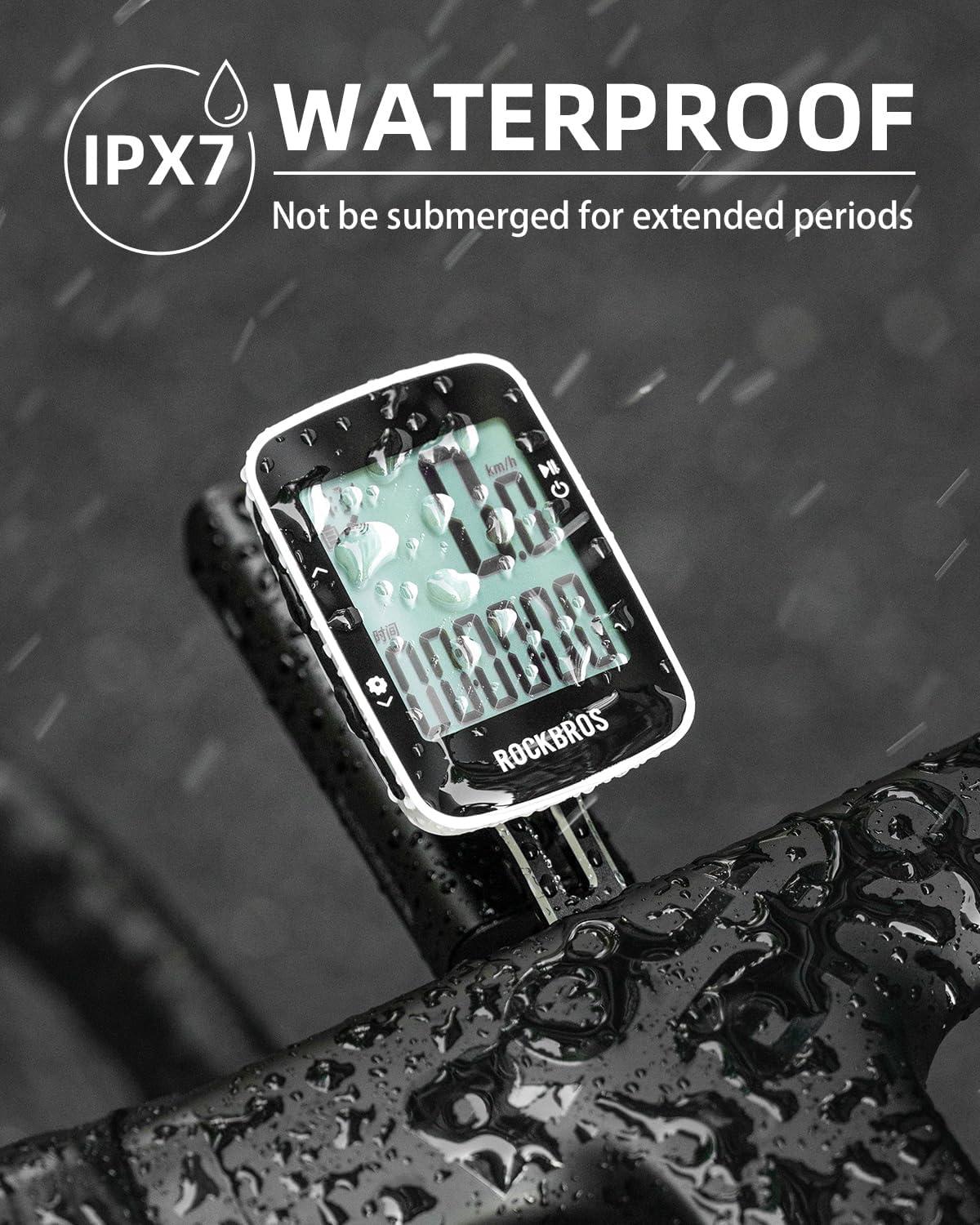 IPX7 Waterproof: The gps bike computer is IPX7 waterproof, meaning it can withstand rain but should not be submerged for extended periods. If there is heavy rain, it is recommended to remove the device and place it in a waterproof bag.