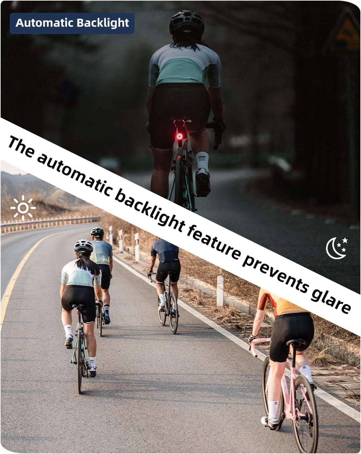 Automatic Backlight: The automatic backlight feature prevents glare. When the time zone is set, our cycling computer calculates sunrise and sunset times, keeping the backlight on continuously from half an hour before sunset until half an hour after sunrise. At other times, the backlight turns off automatically 15 seconds after the last operation.