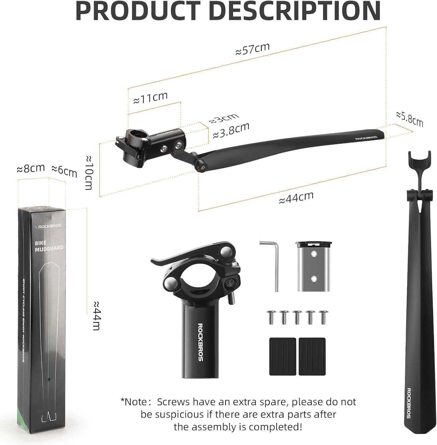 Superior Quality Material: ROCKBROS bike fenders are made of durable and sturdy PP material, providing excellent protection against mud, water, and it is highly flexible and lightweight, allowing it to be easily bent while still retaining its shape.