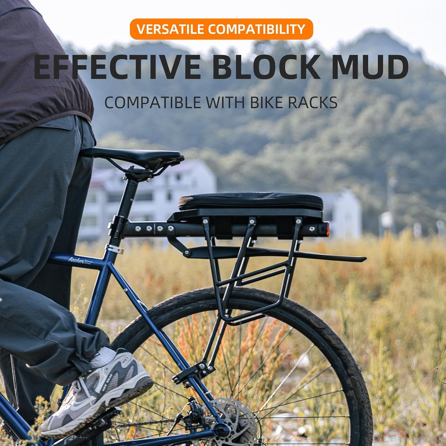 Versatile: Our rear fenders are designed to be compatible with bike racks and tail lights, making them a versatile choice for any cyclist. Don't need to worry about compatibility issues – our rear fenders will fit with ROCKBROS bike racks and tail lights.