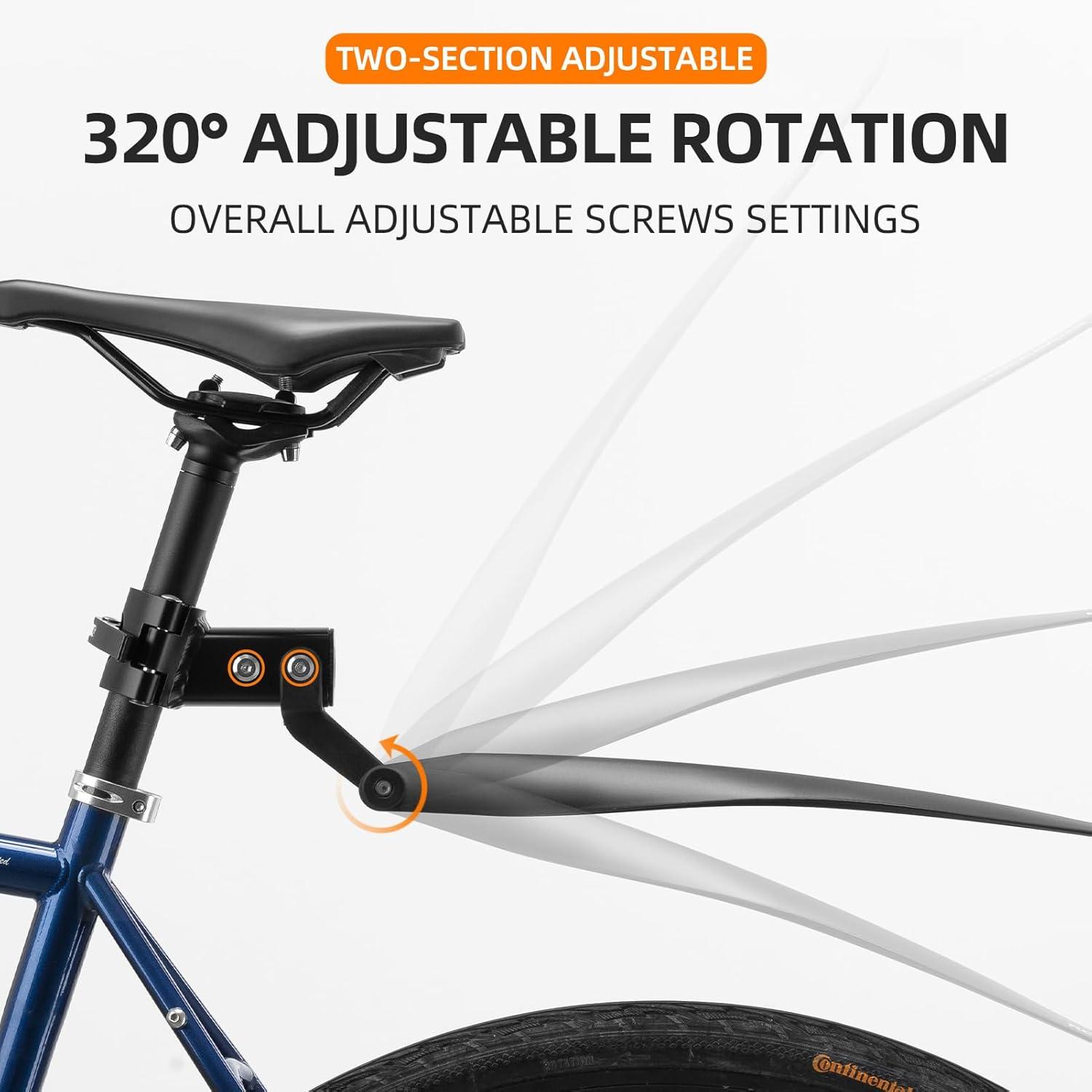 Adjustable: The bike fenders have 320°rotating feature that allows you to adjust the angle to deflect mud and water in the desired direction.Keep your back dry no matter what the weather is like.