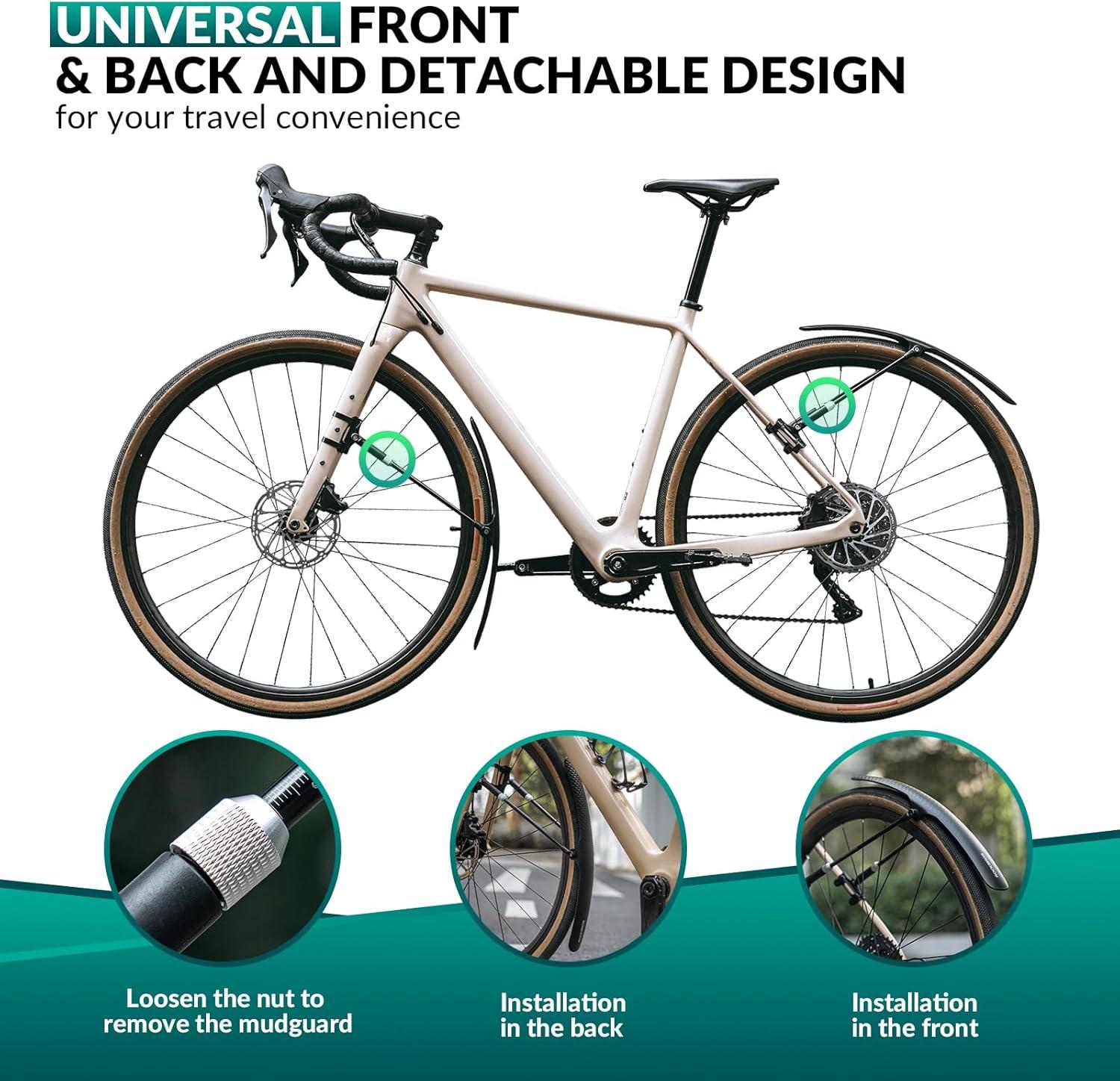 【East to Install & Quick Release】You only need to read the details and use only an included Allen wrench to complete the bike fender set installation easily. On sunny days, you can easily remove the bike fenders 700c without using any tools
