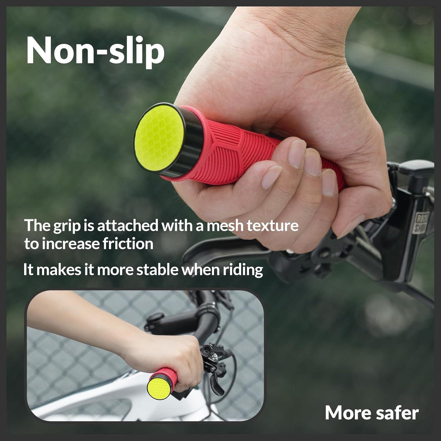 [Anti-Slip Grip Surface]: The textured surface design enhances friction and control in all weather conditions. These bike grips provide confident handling whether you're climbing hills or cruising down trails.