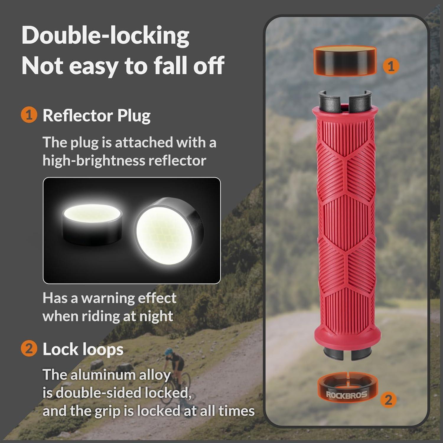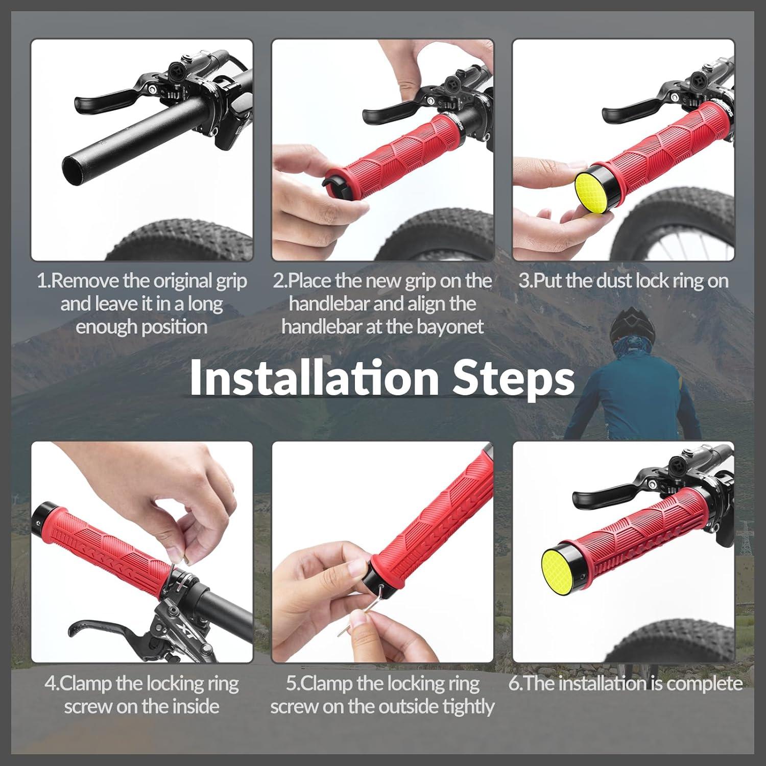 [Secure Double Lock-On Fit]: Equipped with aluminum alloy double lock on grips, these handlebar grips stay firmly in place even on rugged terrain. No more slipping or rotating during intense rides.