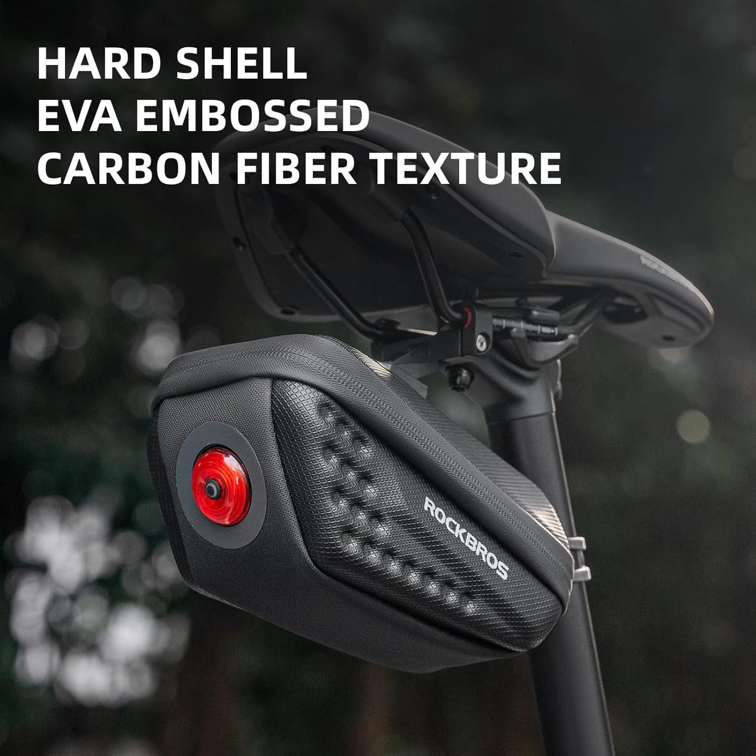 imageROCKBROS Bike Saddle Bag Hard Shell Bicycle Saddle Bag With Tail Lights 045L Bike Seat bagSuitable for Nighttime Cycling Black