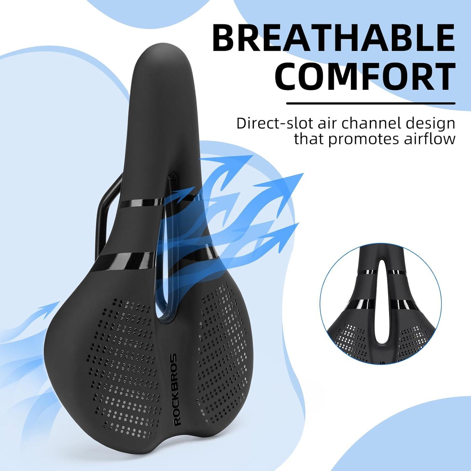 Ergonomic Design: The comfort bike seat features a streamlined, tapered shape that is narrower at the front and wider at the back, preventing leg chafing during rides