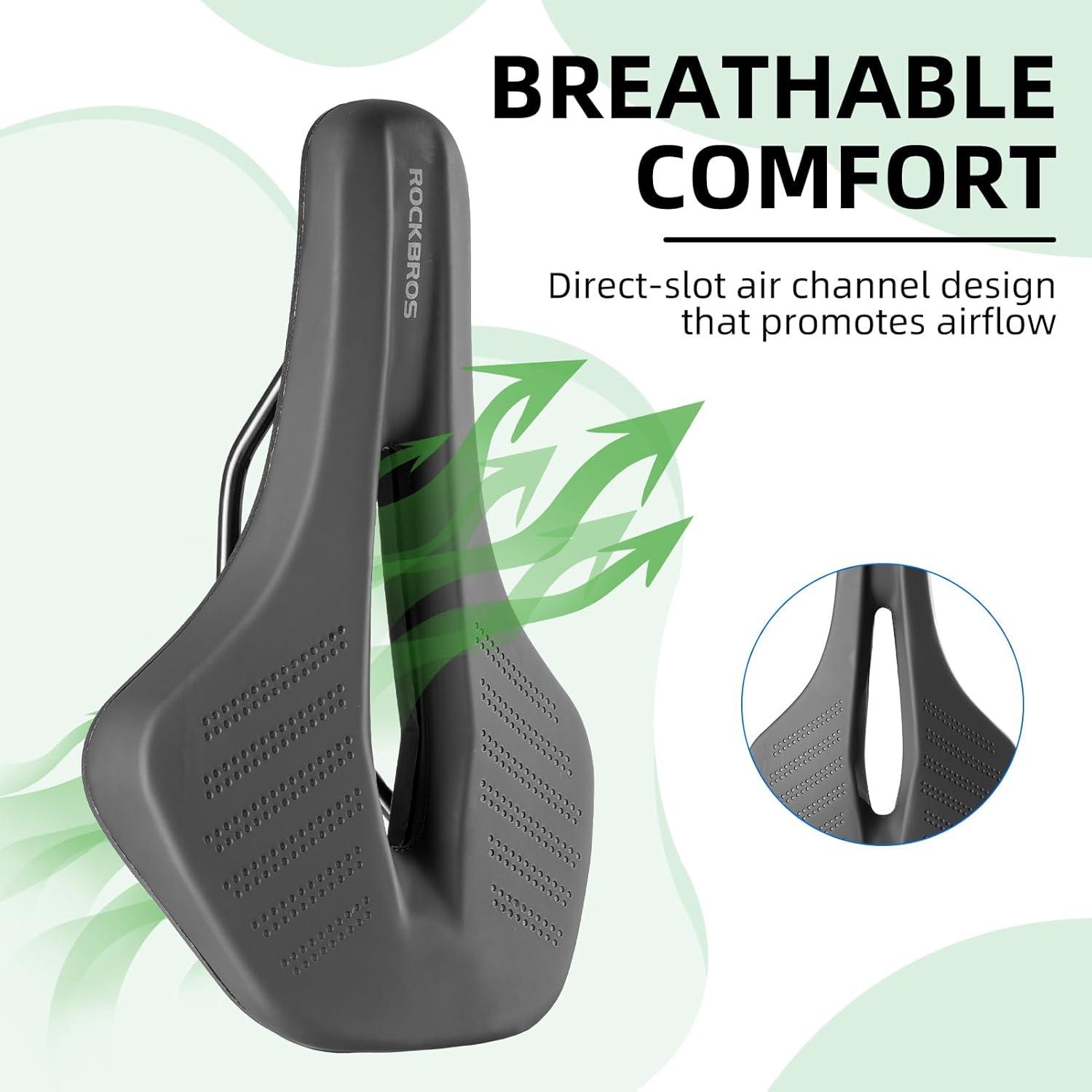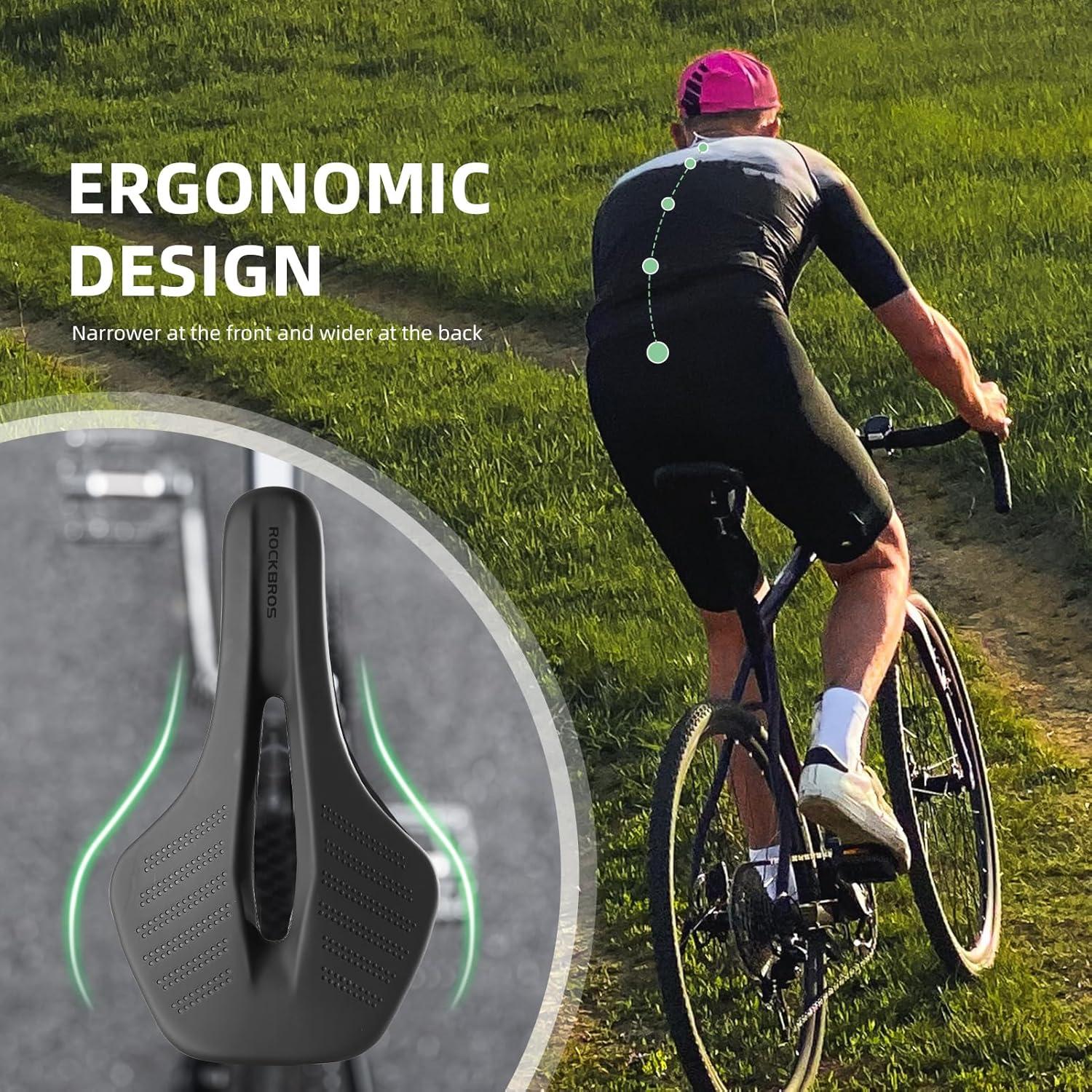 Ergonomic Design: The streamlined, ergonomic shape is designed to reduce pressure on the pelvic bones and alleviate strain during long rides, ensuring a more comfortable cycling experience
