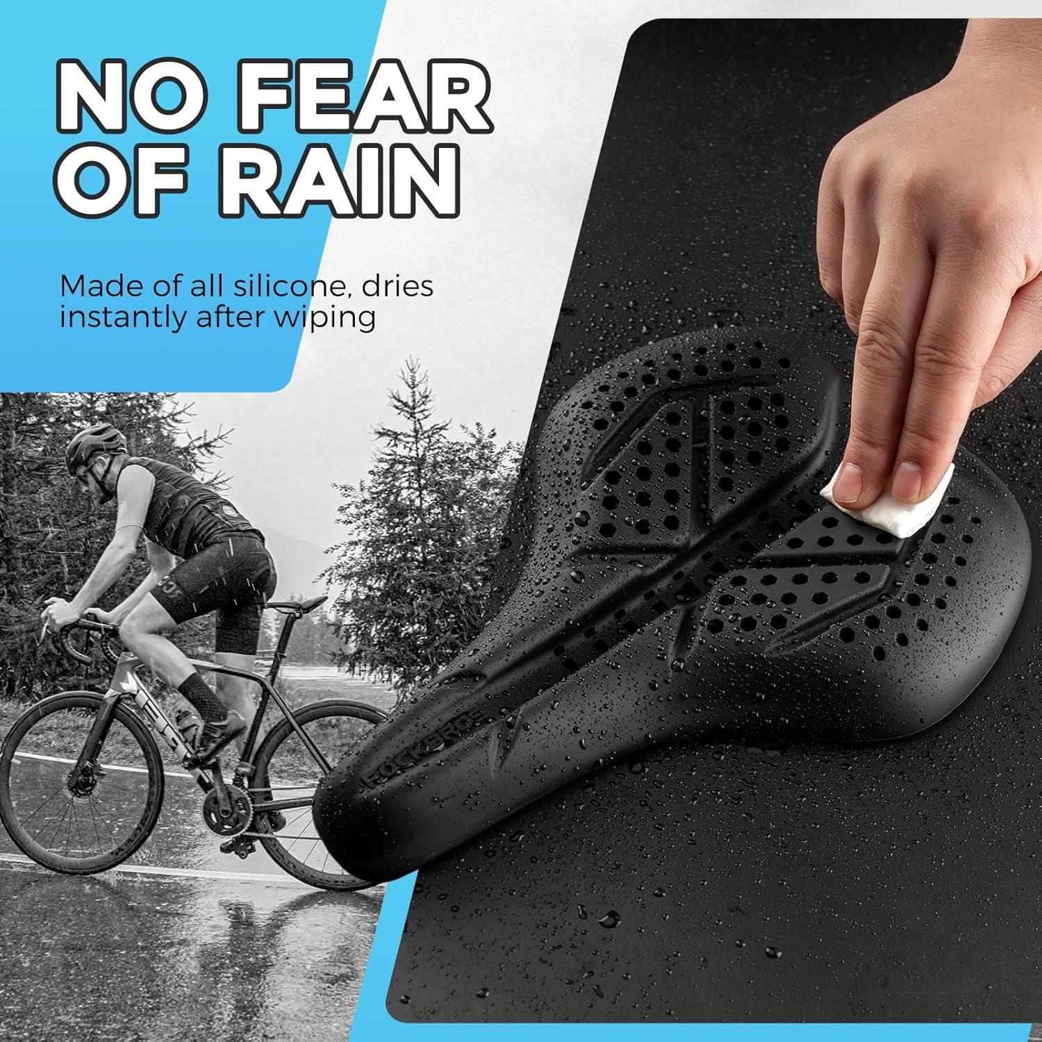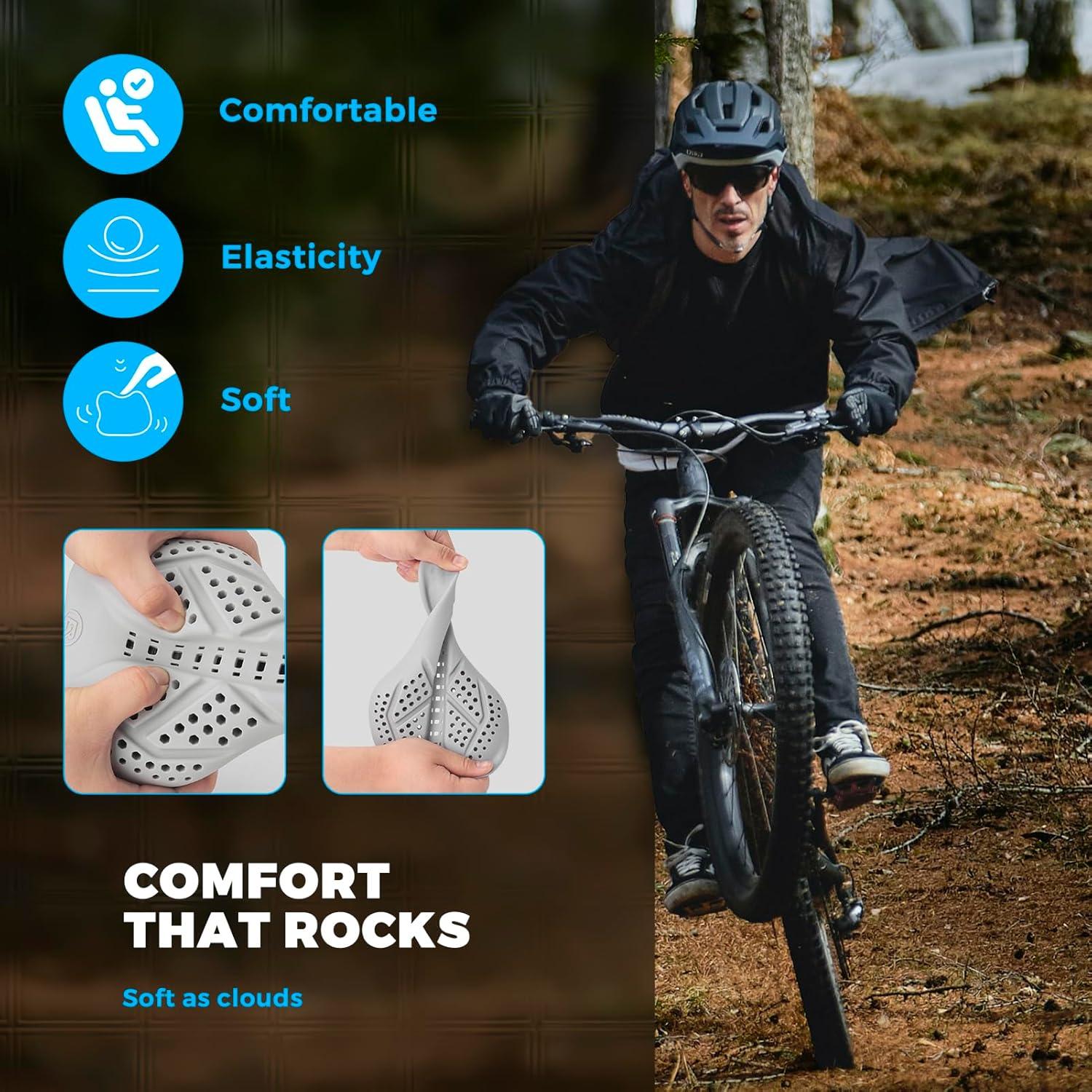 【Comfort That Rocks】Ever felt like your bike seat is a medieval torture device? Meet the ROCKBROS Bike Seat Cover! Crafted from ultra-soft silicone, it’s like a cushiony cloud for your tush, easing pressure on your hips and pelvis. Say goodbye to saddle sores and hello to endless comfort on your rides!