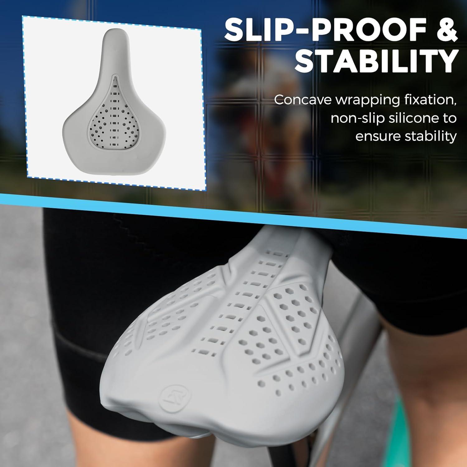【Slip-Proof Stability】 Tired of feeling like you're on a slip 'n slide instead of a bike? Our one-piece, deep-wrap design bike seat cushion hugs your saddle tight, keeping it perfectly in place no matter how wild your ride gets. Stability that even your grandma would approve of!