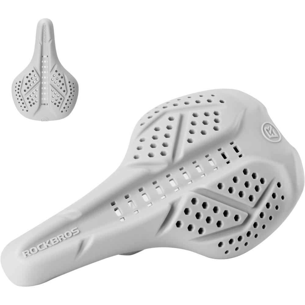 ROCKBROS Bike Seat Cushion Comfort Bike Seat Cover Extra Soft, Silicone Exercise Bicycle Seat Cushion Anti Slip, Breathable for Gym Adult Bike Accessories(gray)