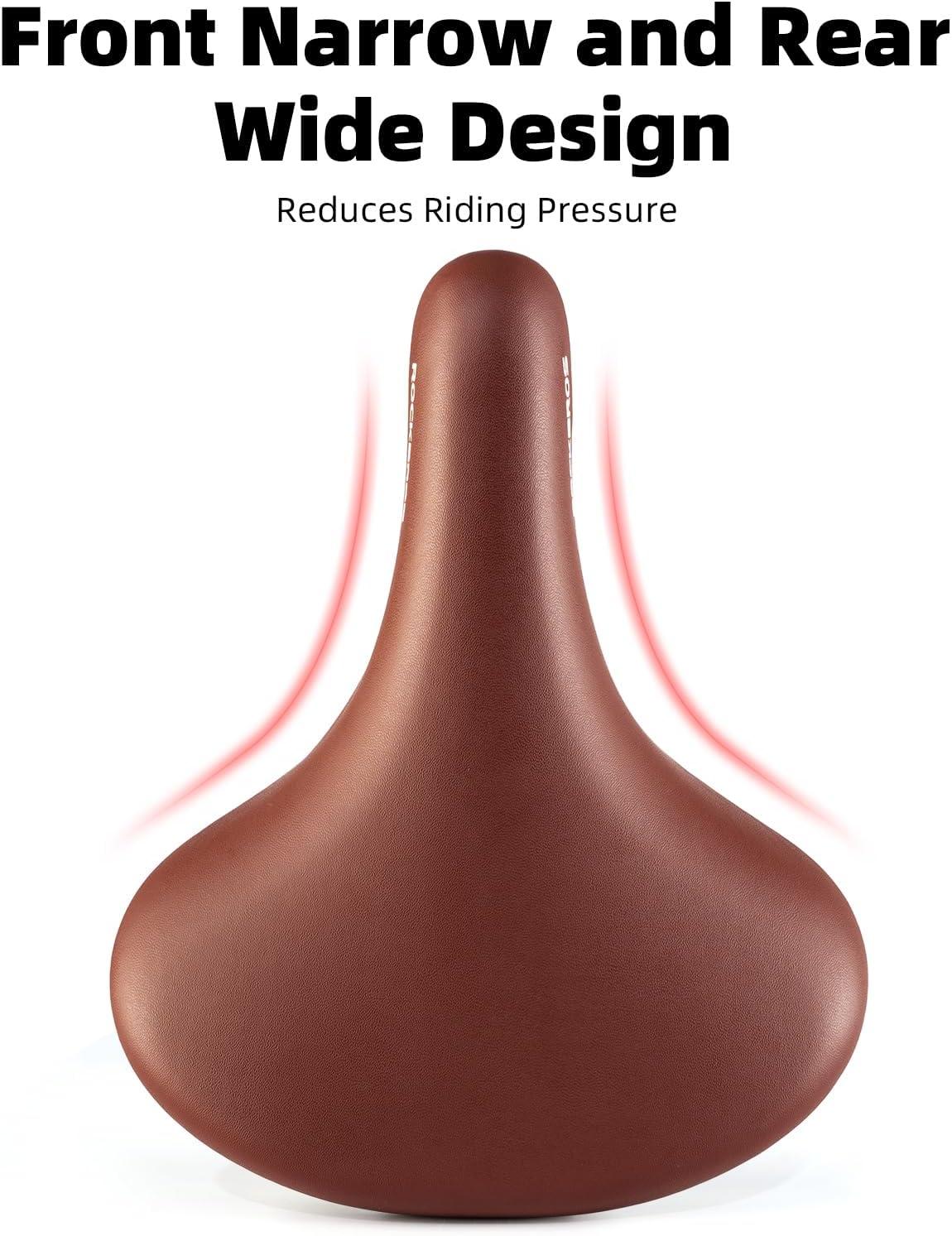 Water-Resistant & Easy-Clean Surface:This bicycle seat crafted with stain-resistant microfiber leather that effectively shields against light rain and moisture, allowing easy cleaning with a damp cloth for lasting use in various weather conditions