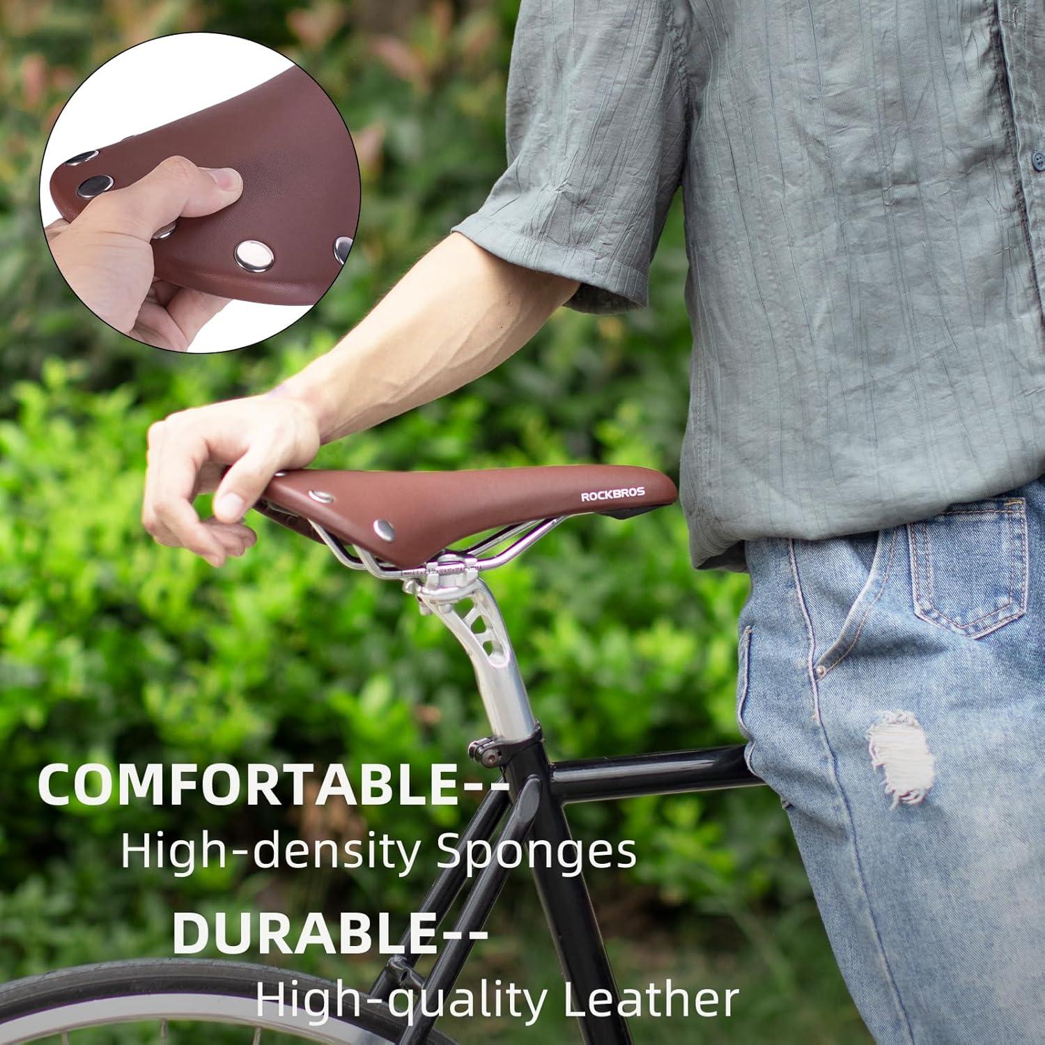 ROCKBROS Bike Seat, Vintage Bicycle Seat, Waterproof Bike Saddle, Comfortable Bike Seat for Men & Women, Classic Lite Bike Seat Replacement Suitable for City Cycling(A2 – Brown)