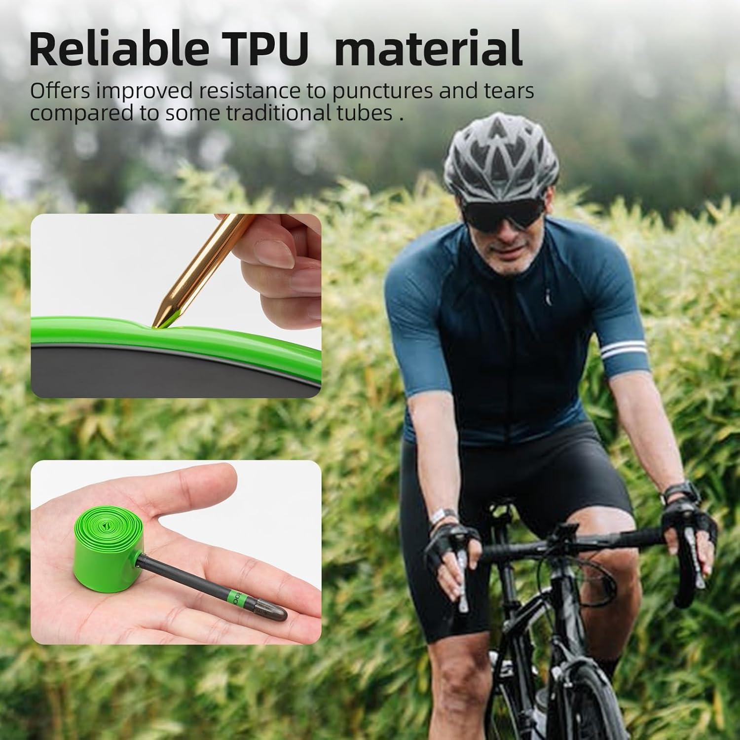 LOW ROLLING RESISTANCE: TPU inner tube is lighter and softer, with less friction on the outer tire and wheel rim, lower rolling resistance, and easier pedaling