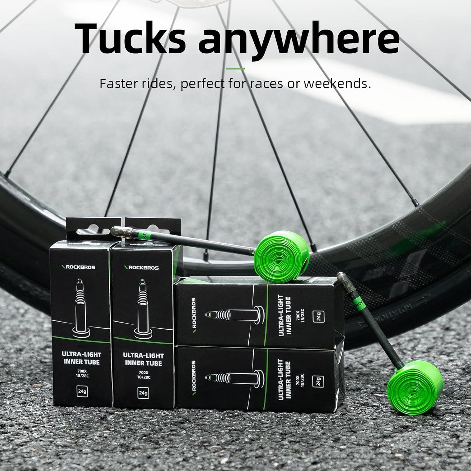 ROCKBROS Bike Tube 700C≈622mm Presta Valve Inner Tubes 700C×18/23/25/28C(65mm/85mm) General TPU Lightweight Easy-Taking Bike Tubes for Cycling(green)