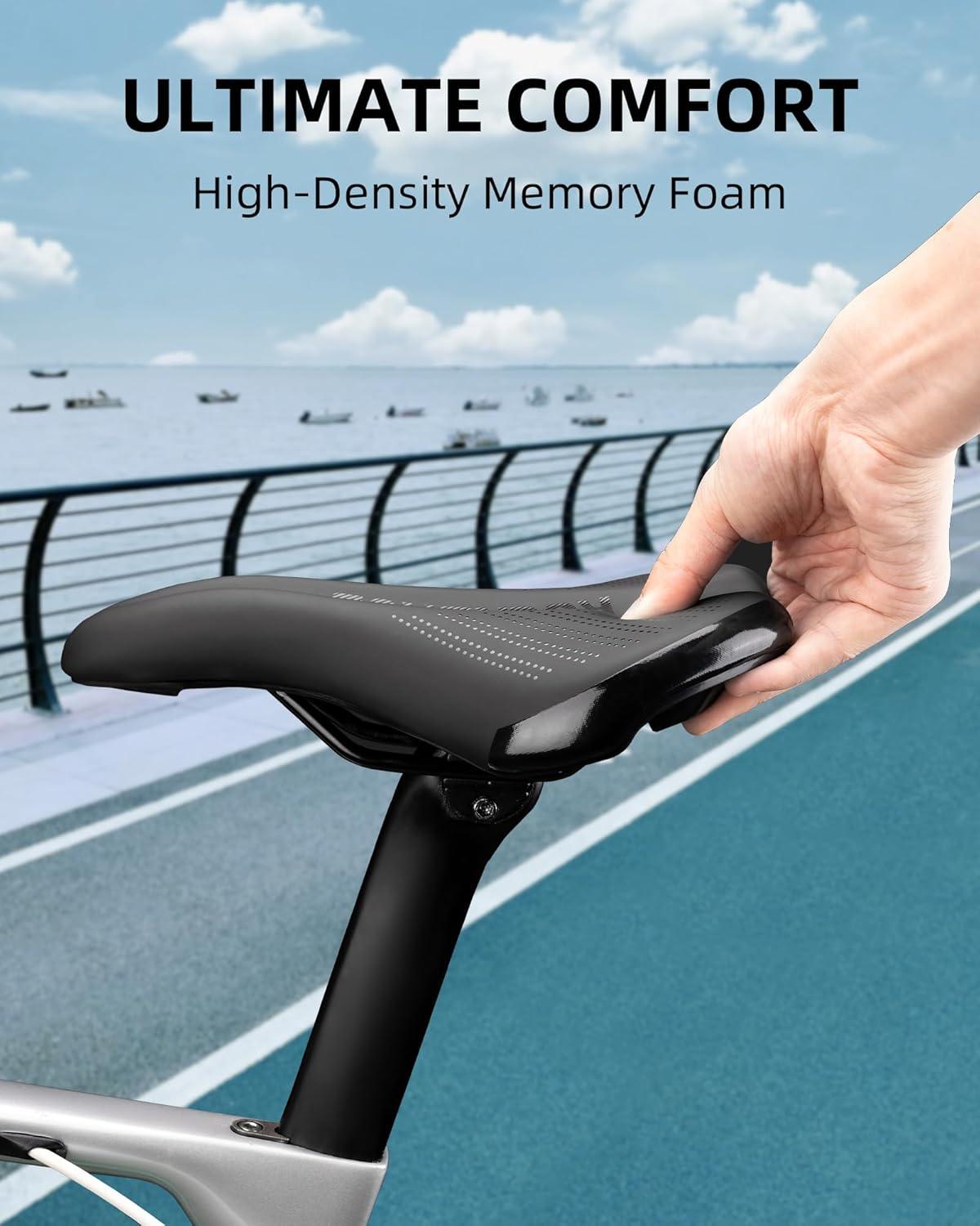 ROCKBROS Comfortable Bike Seat Cushion Made of Thick, High-Density Memory Foam for Men Women Waterproof High Carbon Steel Bike Seat Fit for Mountain Road Bike with Dense Anti-Slip Reflective Dots