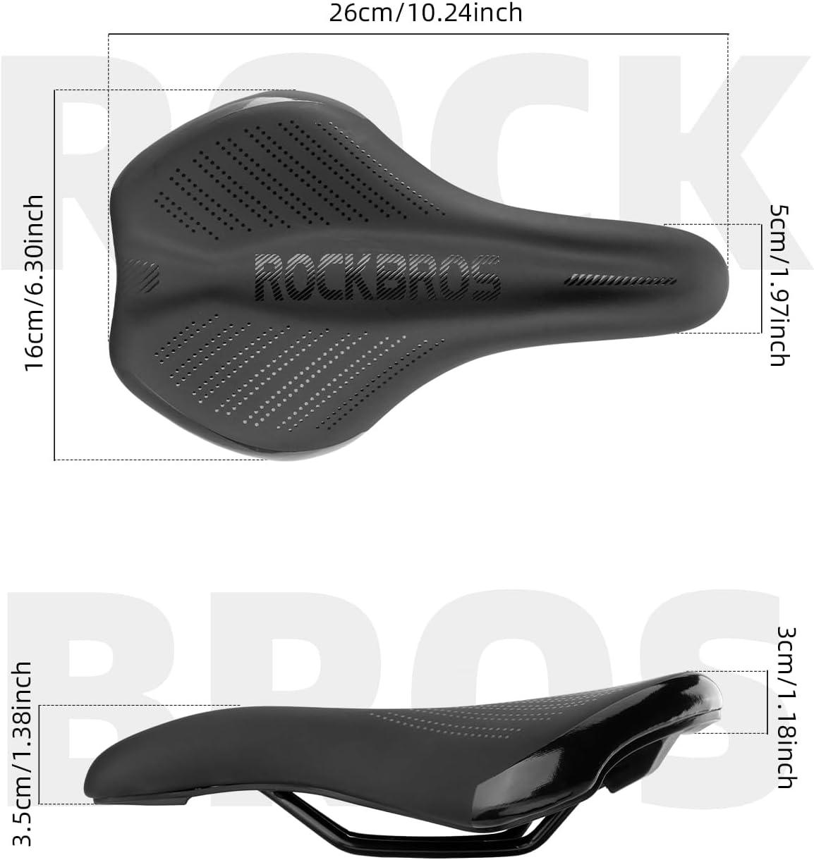 [ALL-WEATHER PERFORMANCE]: The ROCKBROS Bike Saddle features a waterproof PU layer that protects the filler cotton from moisture, ensuring long-lasting elasticity. Ride with confidence in any weather, rain or snow.