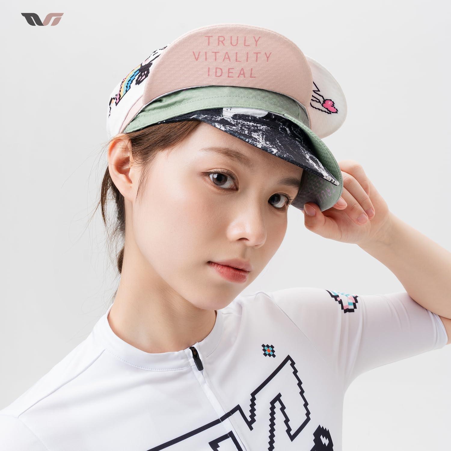 ROCKBROS Cycling Cap Bike Cap for Women with Sun Visor Cooling Skull Cap Helmet Liner Sun Protection Running Hat(Digital White)