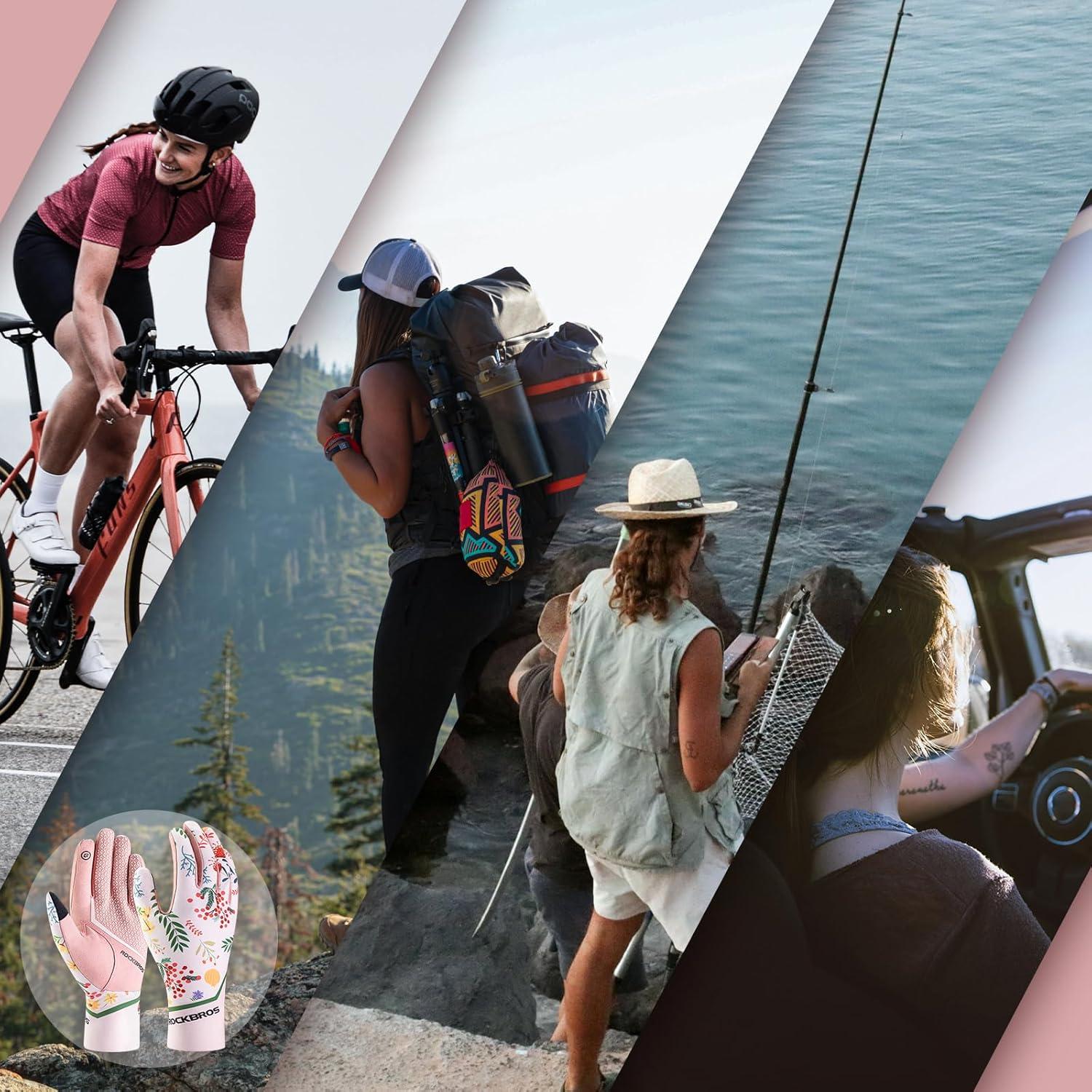 【Botanical Print】: Our biking gloves designed to meet your needs for comfort, style, and functionality. With a beautiful botanical print in a refreshing pink color, these cycling gloves for women exude feminine vitality, making them perfect for spring and summer use