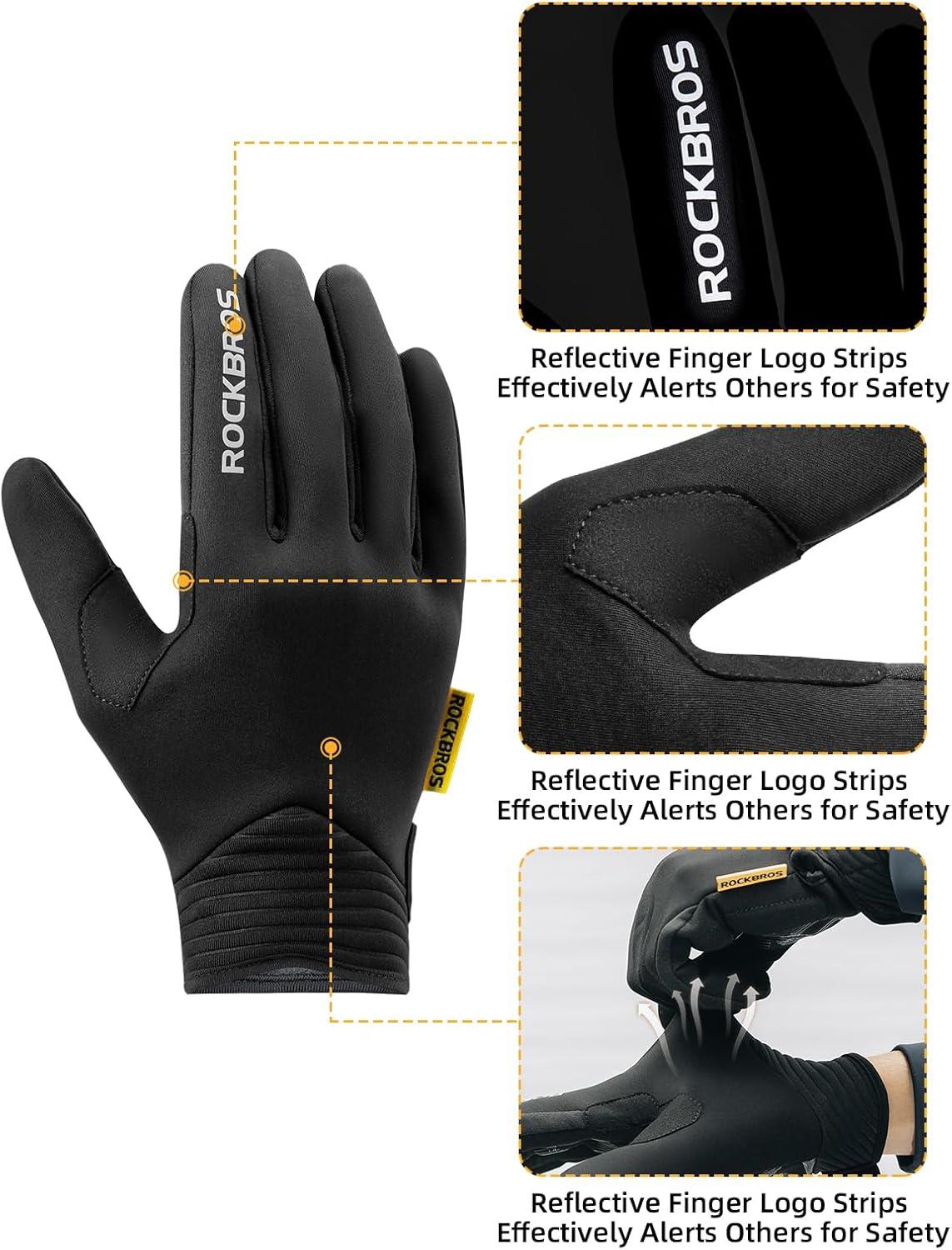 imageROCKBROS Cycling Gloves for Men Women Cold Weather Touchscreen Motorcycle Mountain Bike Gloves Full Finger Bike Gloves SBR Pad Biking Gloves for Men Bicycle GlovesUS M Asian L