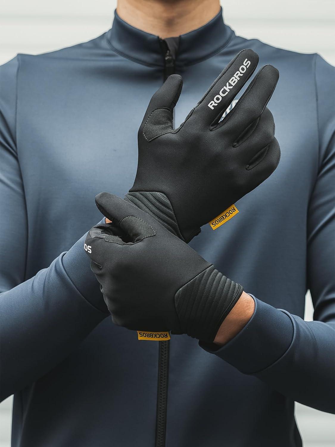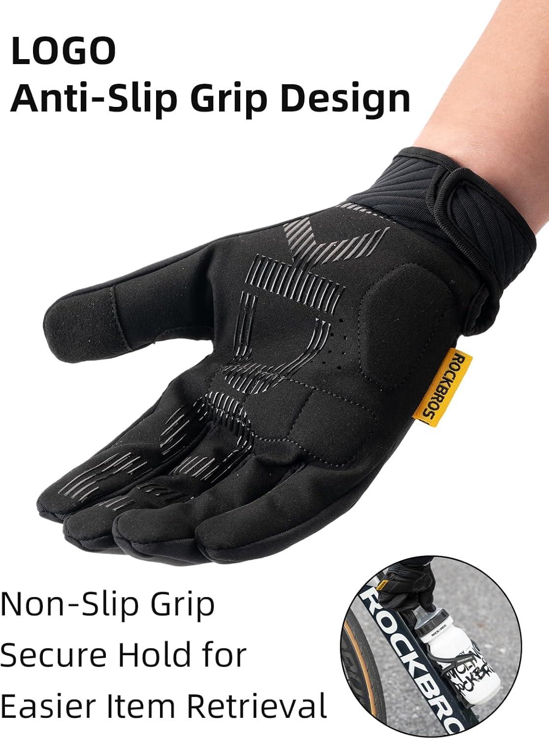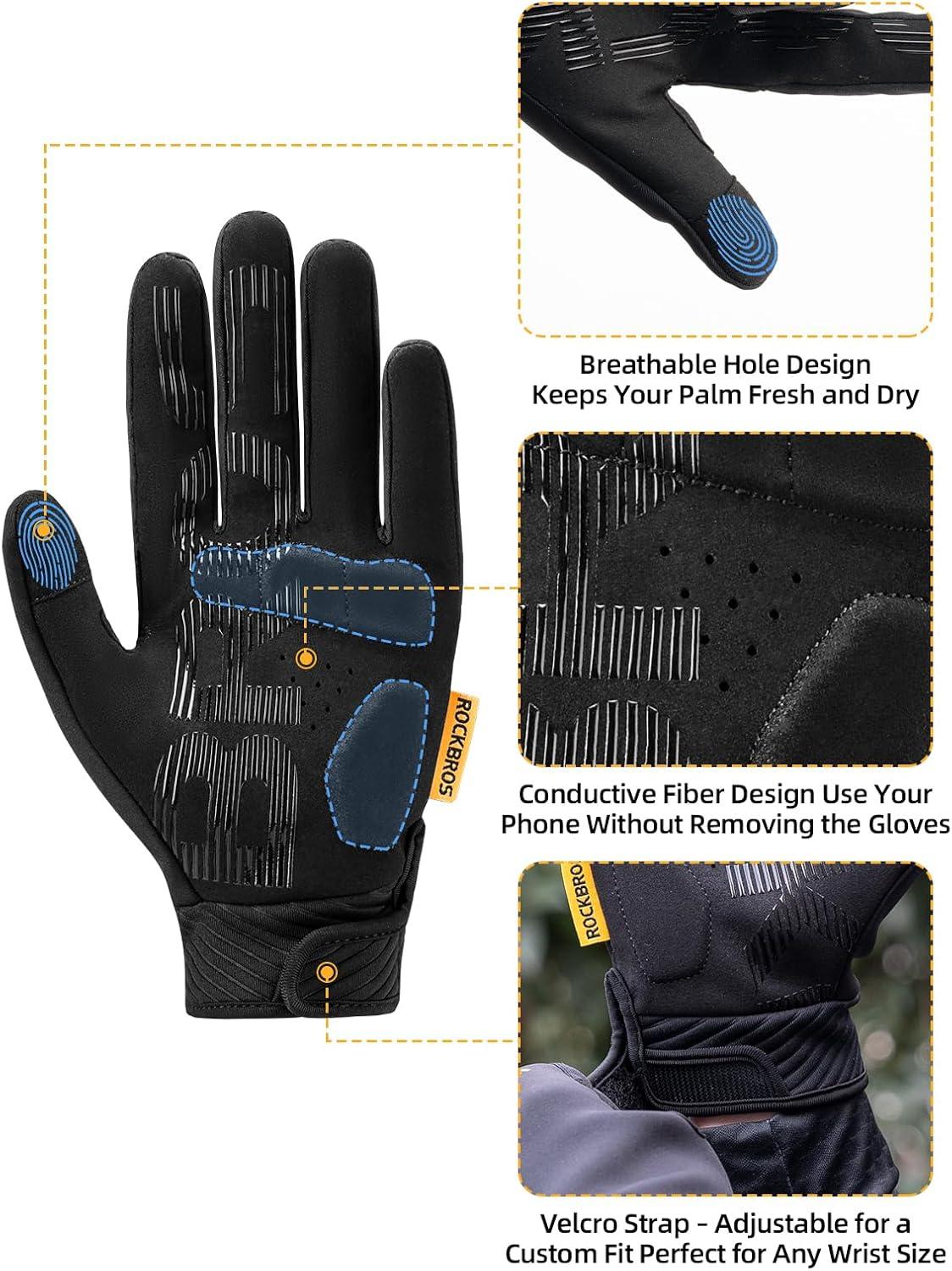 imageROCKBROS Cycling Gloves for Men Women Cold Weather Touchscreen Motorcycle Mountain Bike Gloves Full Finger Bike Gloves SBR Pad Biking Gloves for Men Bicycle GlovesUS XSAsian S