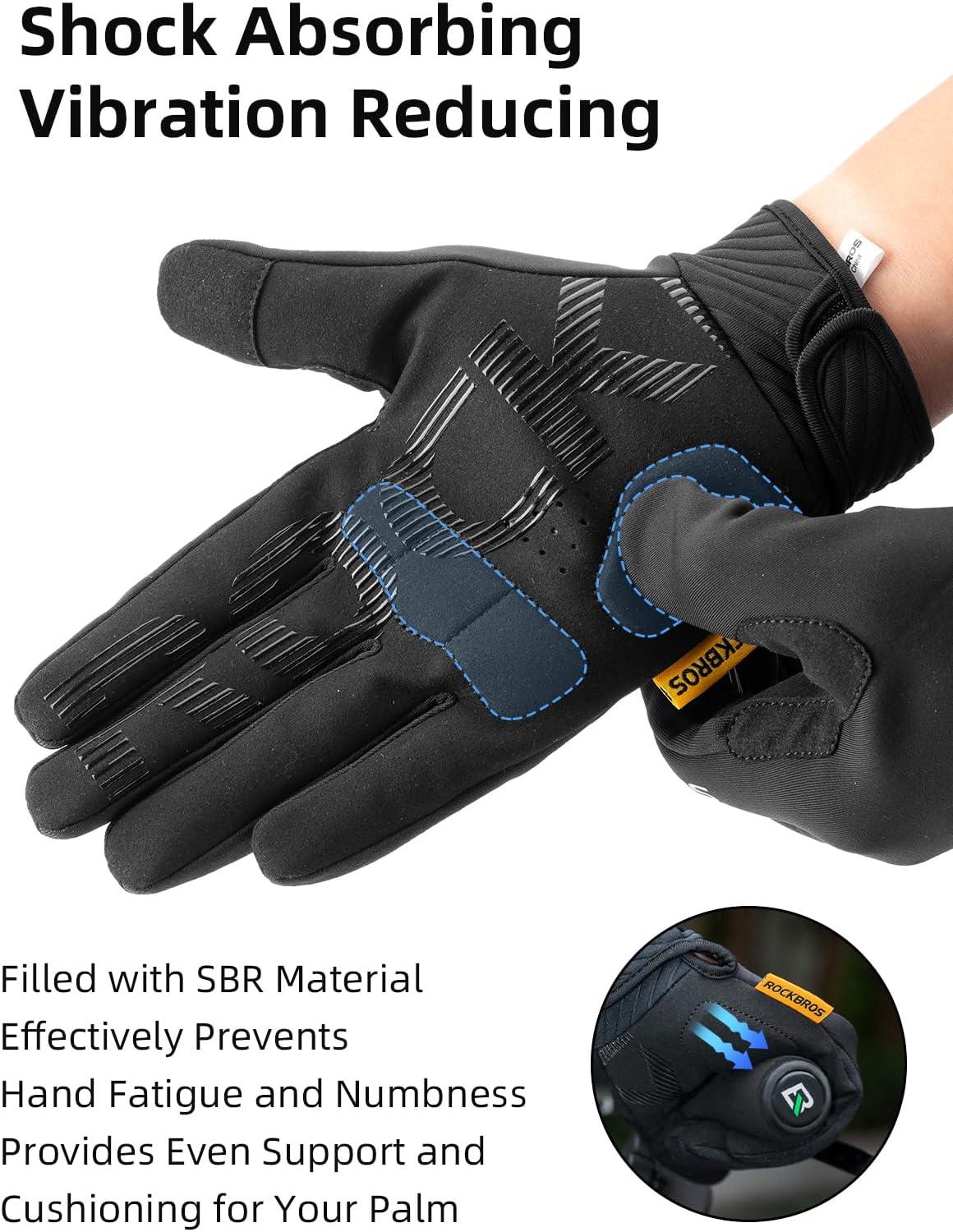 imageROCKBROS Cycling Gloves for Men Women Cold Weather Touchscreen Motorcycle Mountain Bike Gloves Full Finger Bike Gloves SBR Pad Biking Gloves for Men Bicycle GlovesUS S Asian M