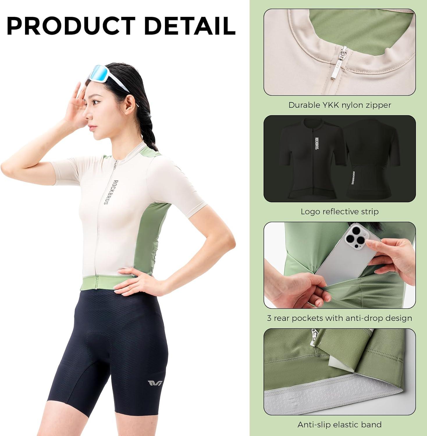 ROCKBROS Cycling Jersey Women, Short Sleeves Bike Shirts with Pockets, Quick Dry Bicycle Clothing for Road Mountain E-Bike(Green)