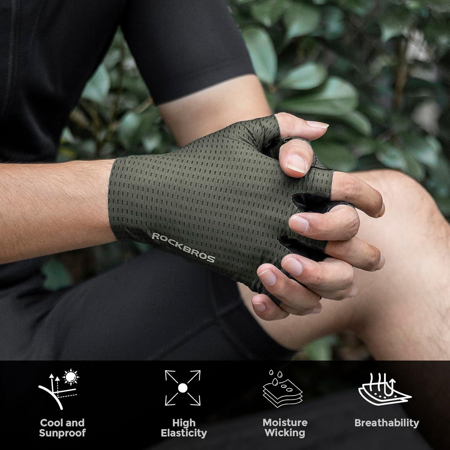imageROCKBROS Half Finger Cycling Mountain Biking AntiSlip Breathable Bicycle Bike Gloves for Men Women Cycling Sports GlovesGreenL
