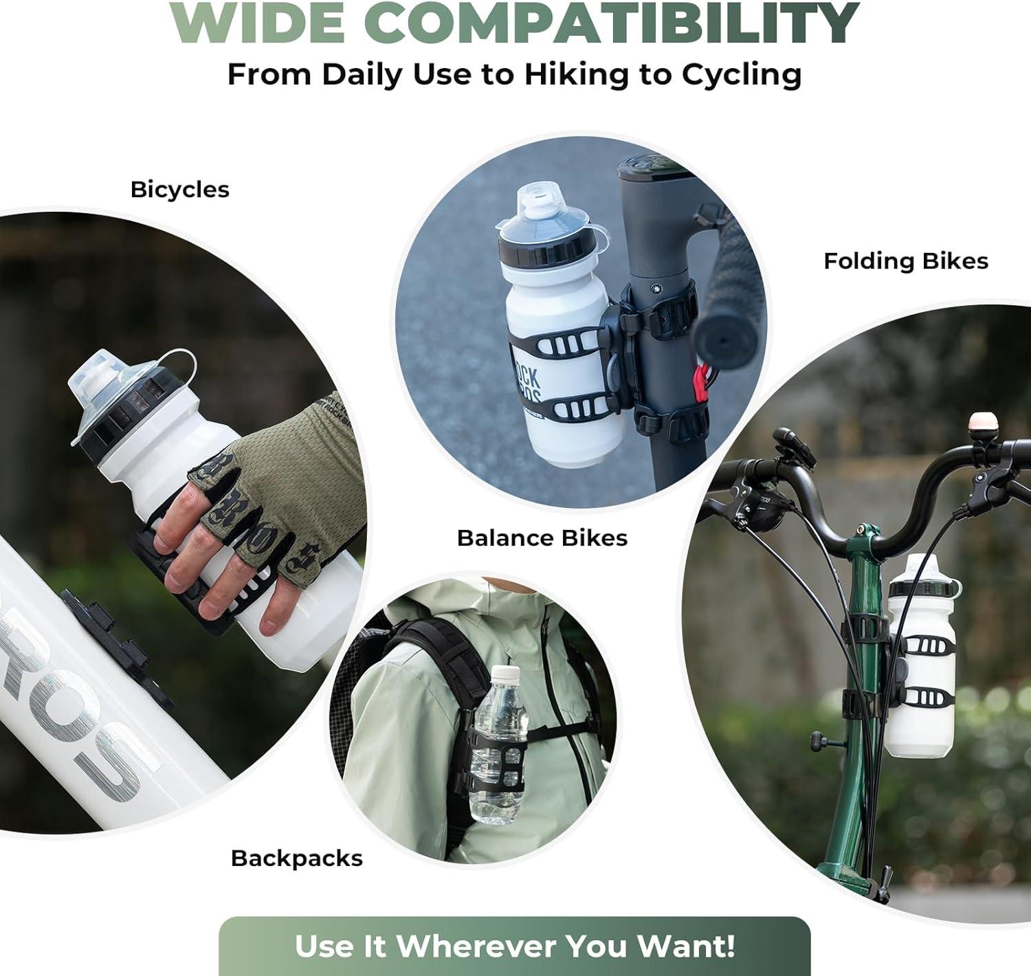 Security: The buckle-style locking mechanism ensures the water bottle stays firmly locked in place under various road conditions, without loosening. The adjustable strap design accommodates bike frames of different diameters and shapes, enhancing compatibility and ensuring a secure installation