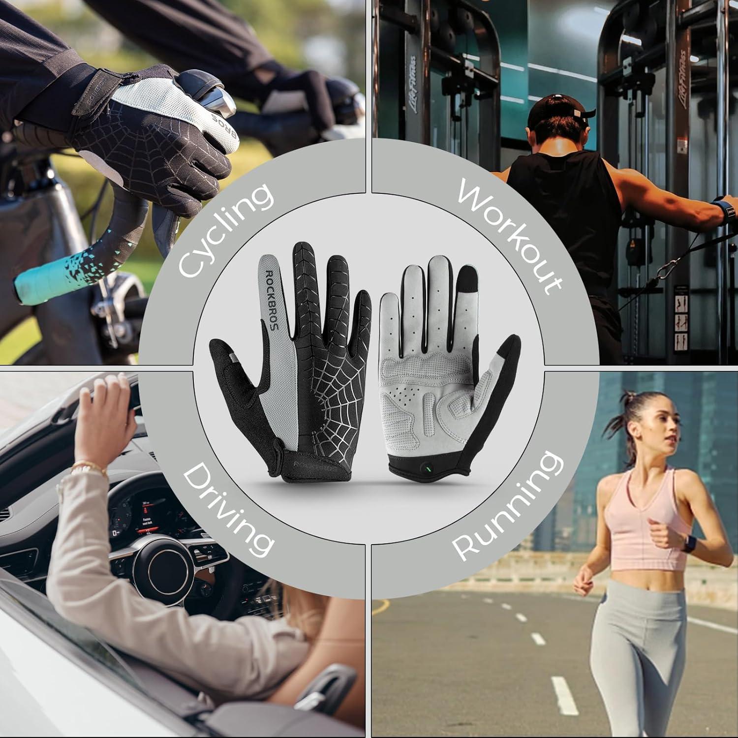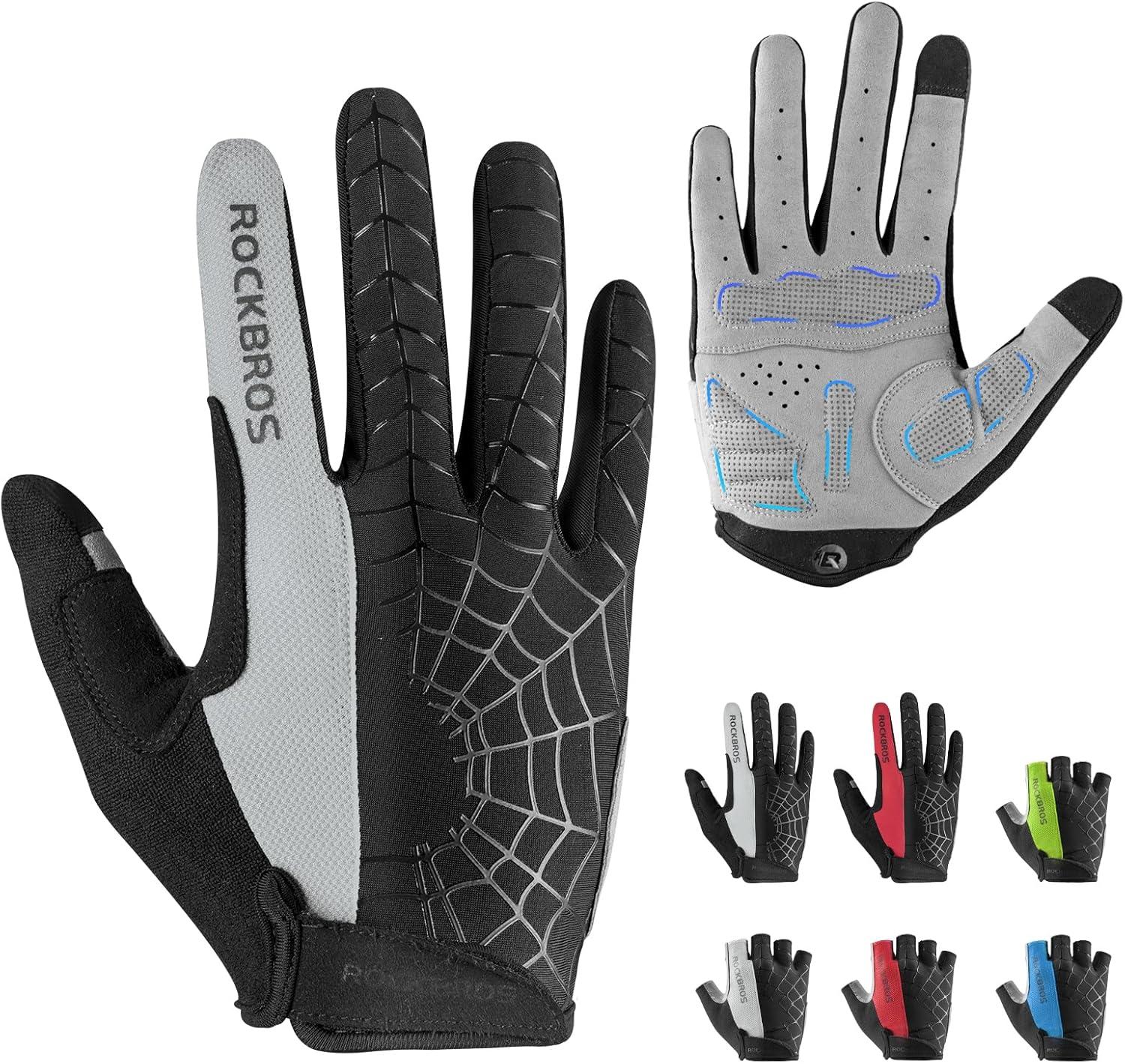 ROCKBROS Men’s Cycling Gloves with SBR Pad, Anti-Slip, Breathable for Spring, Autumn Sports Riding(Gray)