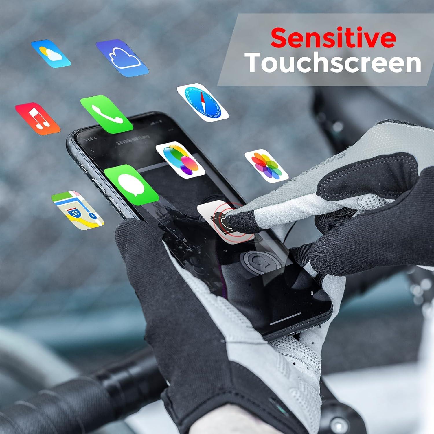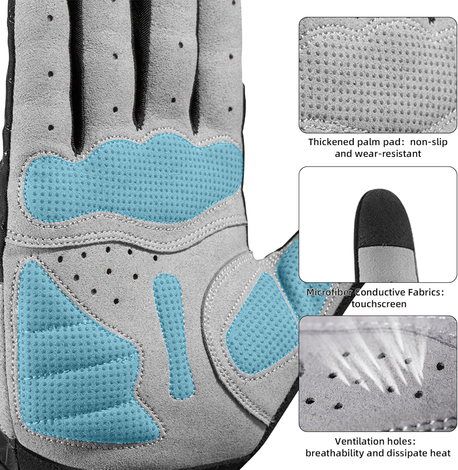 【EASY TO REMOVE】The pull tabs on your ring and middle fingers help you get off your gloves easily; our bike gloves come with adjustable wrist hook-and-loop closure, they can wrap tightly around your wrist with no bulky and stiff feeling, offers you a comfortable and dexterity feeling