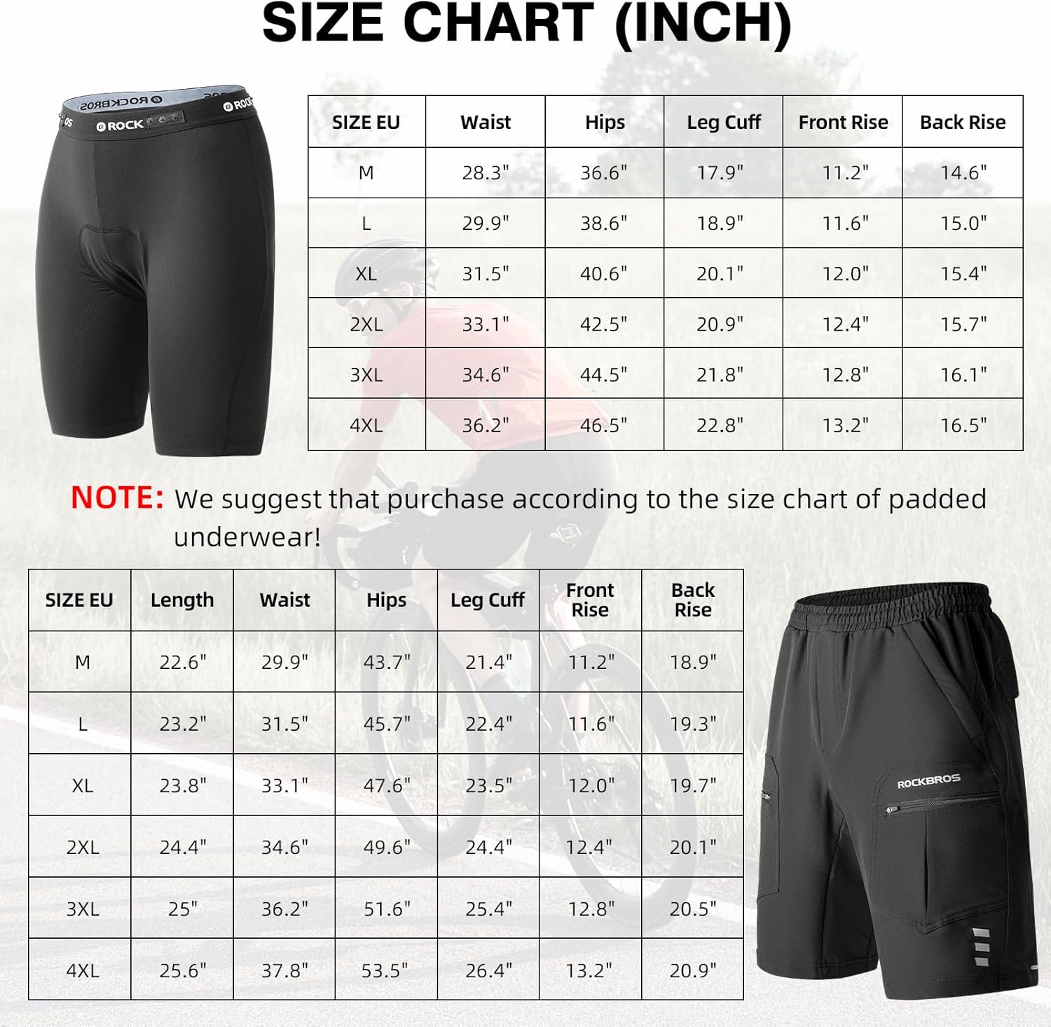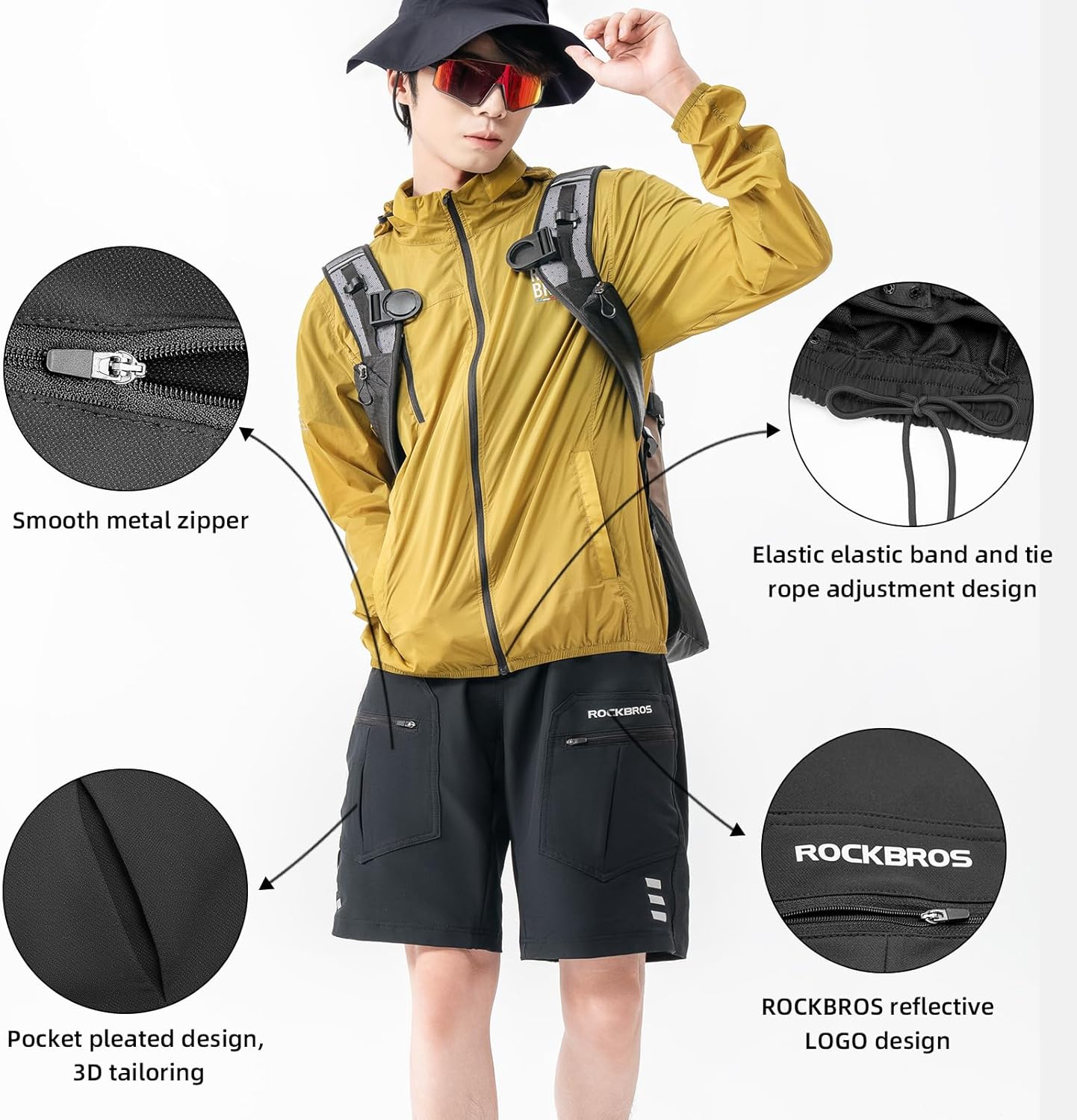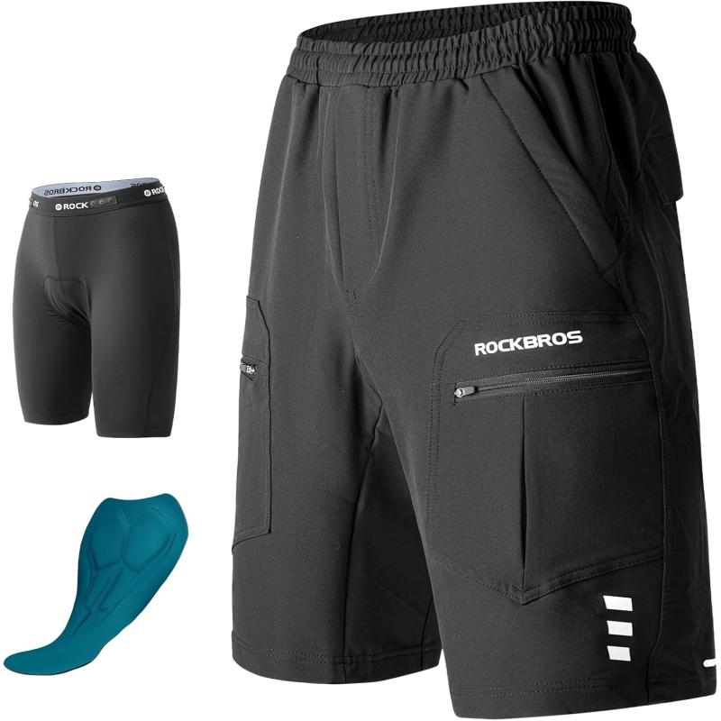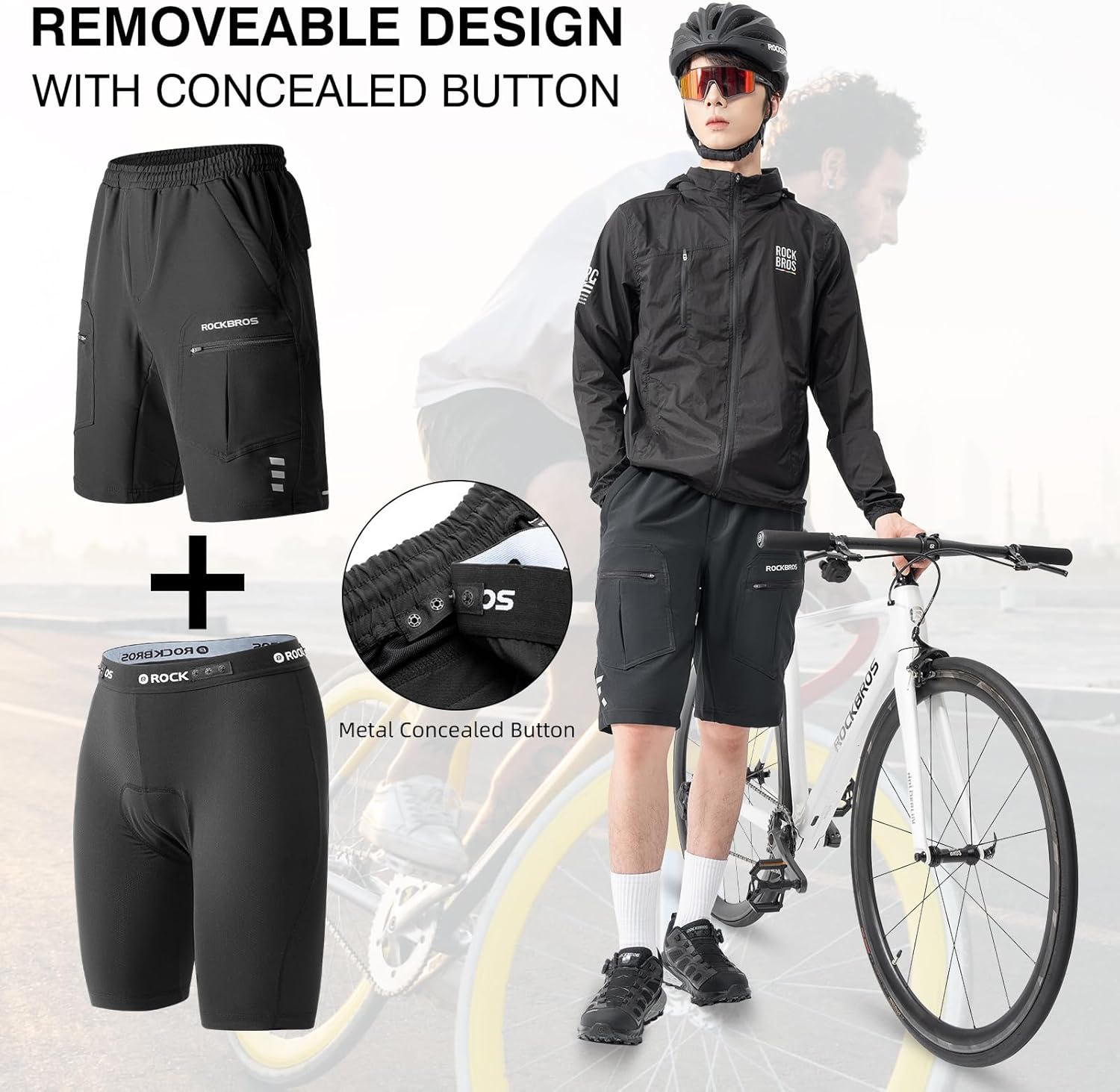 ROCKBROS Men's Mountain Bike Shorts Bicycle MTB Shorts 4D Padded Loose-fit MTB Cycling Shorts for Men Baggy Bike Shorts(Black)