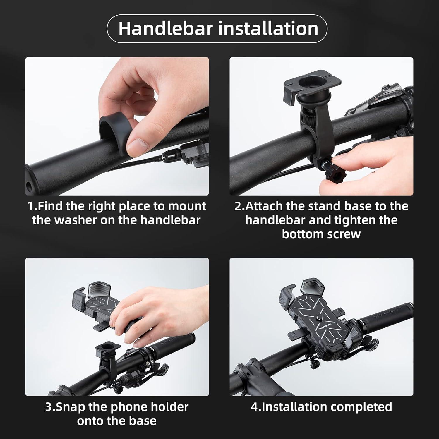 EASY INSTALLTION. The mount can be attached to your bike in seconds. The extra 2 rubber ring inserts and you can can add or remove the rubber rings inserts according to the diameter of handlebar. Suitable for various types of bicycles, motorcycles, stroller, shopping cart, electric scooter etc.