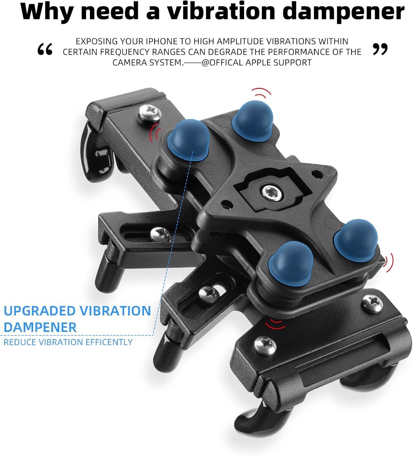 DOUBLE SHOCKPROOF PROTECTION – We used a new shock-absorbing technology in our bike phone mount.Dual shock absorption system to better protect your smart phone.A protective silicone layer is built in the bottom of cellphone holder, which has a good shock-proof effect;Besides, there are 4 shock-absorbing rubber columns designed on this phone mount to reduce the shock from all directions produced during cycling, which also makes phones more stable.