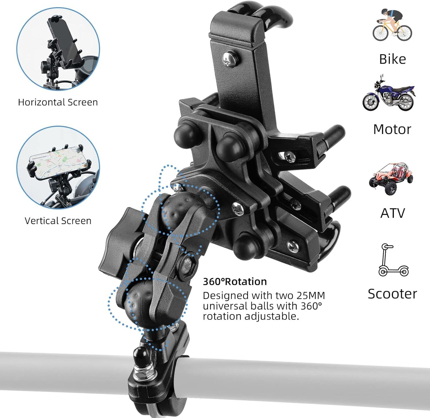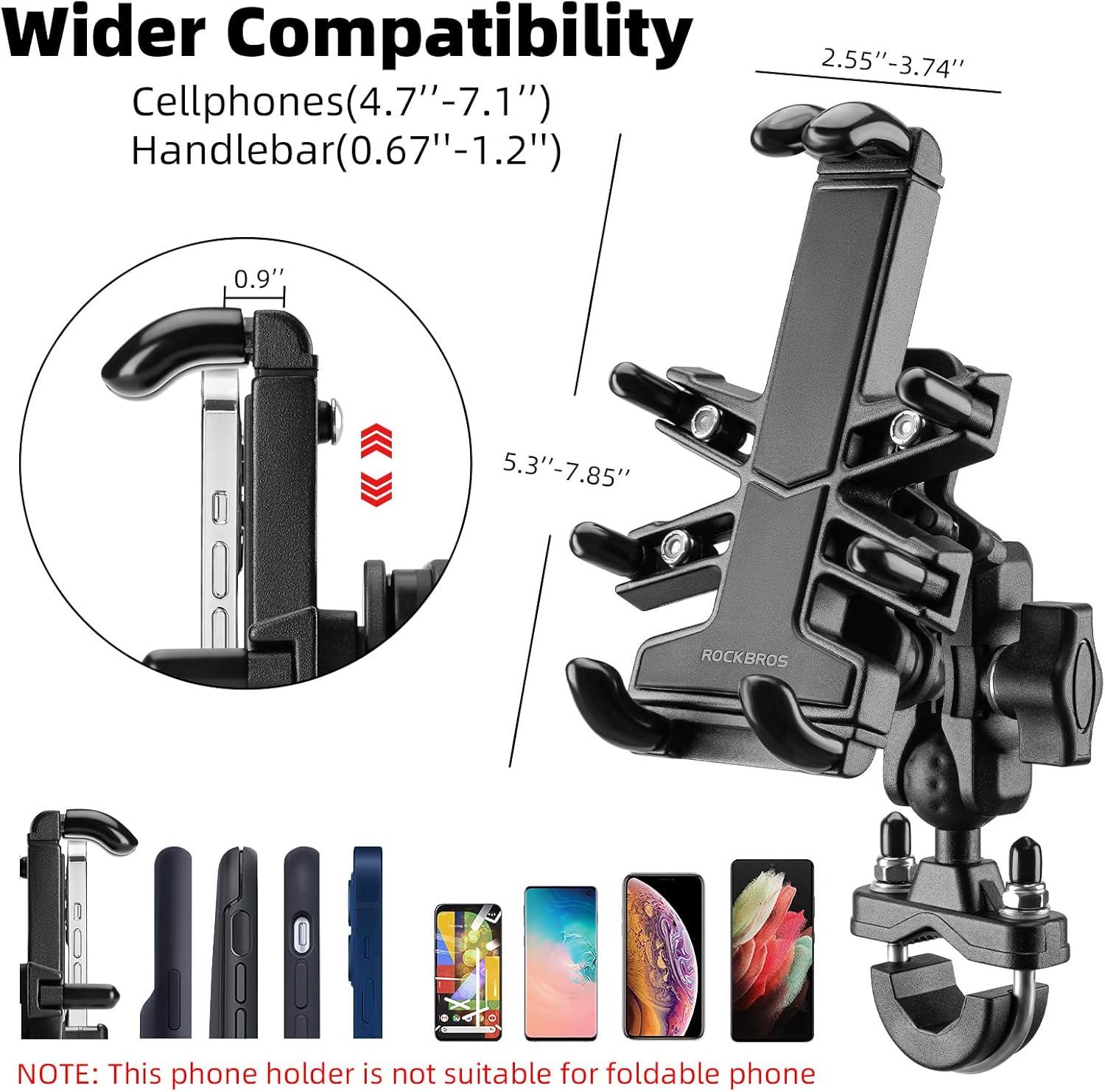 UNIVERSAL PHONE HOLDER – This universal bike phone mount can fits 4.7 – 7.1 inches phones, like iPhone 14 / 13/ 12 Pro Max, Pro, iPhone 14 Plus, iPhone Xs, iPhone XR, X, 8 Plus 7 6s 6, Galaxy S10 + S10e S9 S8, Note 9, LG and more.The total thickness that the motorcycle phone holder can accommodate: mobile phone + mobile phone case less than 23mm/0.9in.We offer a 100% satisfaction guarantee.If any issue please contact us, we will be glad to service.