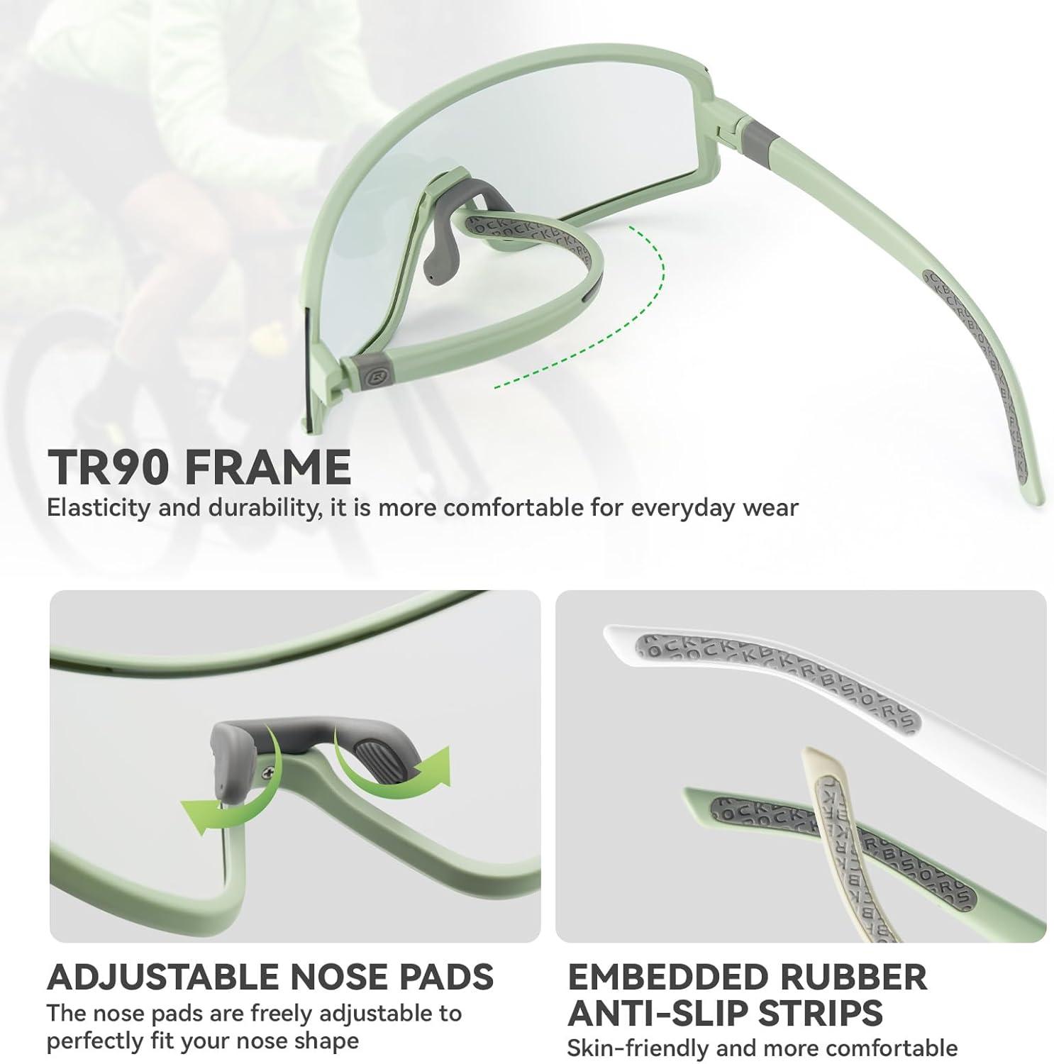 ROCKBROS Photochromic Cycling Glasses for Men Women Sports Glasses UV Protection(Sky Green/Clear)