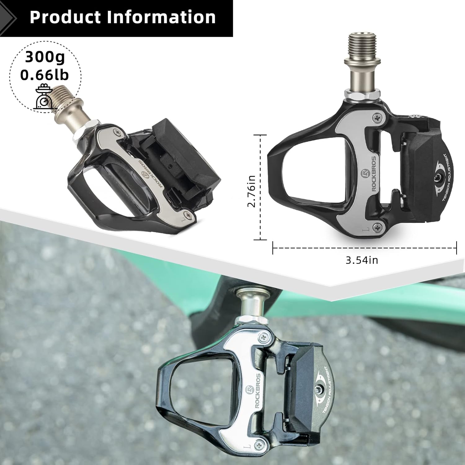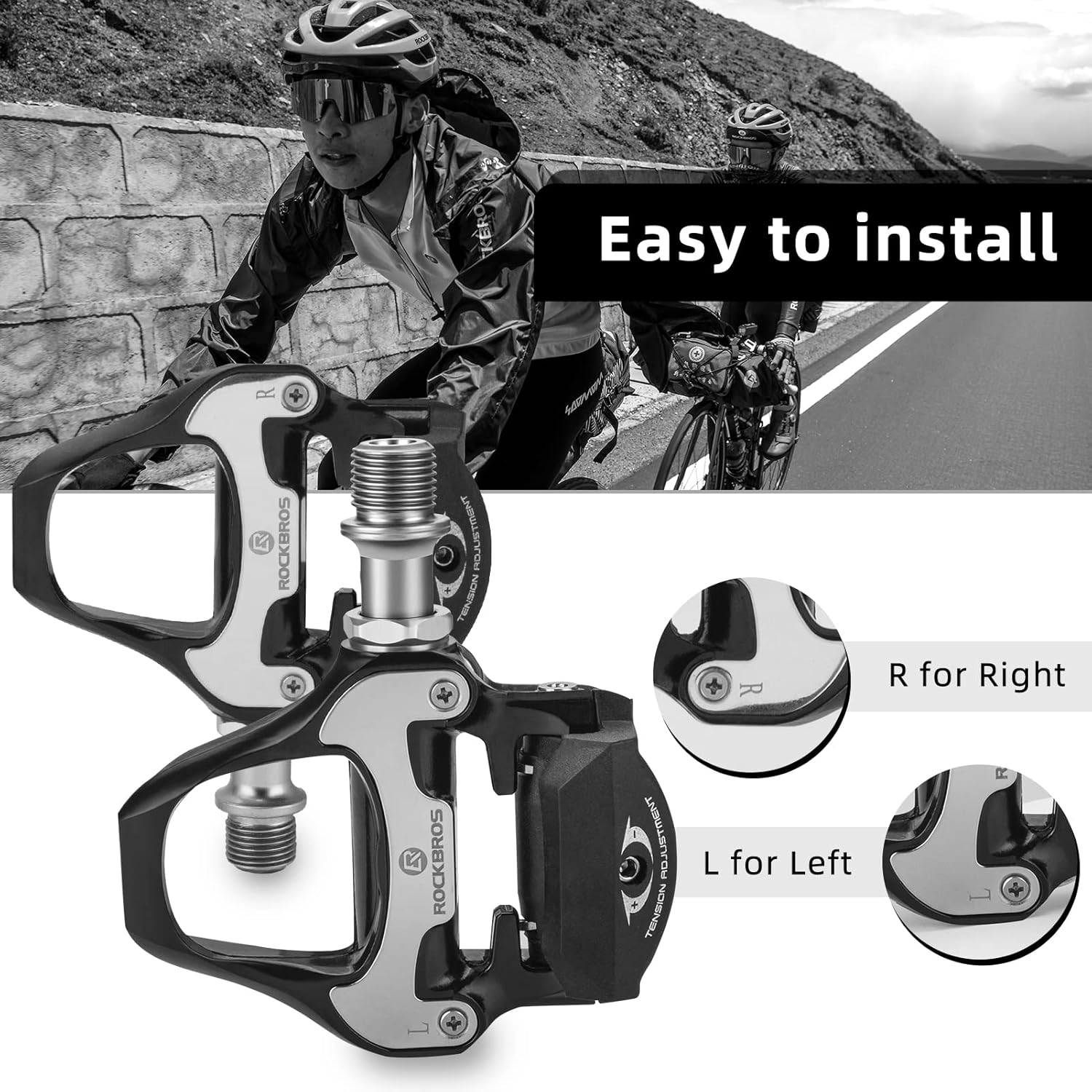 ROCKBROS Road Bike Pedals Lightweight Clipless Bicycle Pedals with Cleats Set Compatible with SPD-SL System(Black-alloy body)