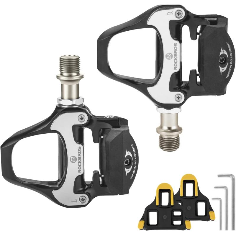 imageROCKBROS Road Bike Pedals Lightweight Clipless Bicycle Pedals with Cleats Set Compatible with SPDSL SystemBlackalloy body